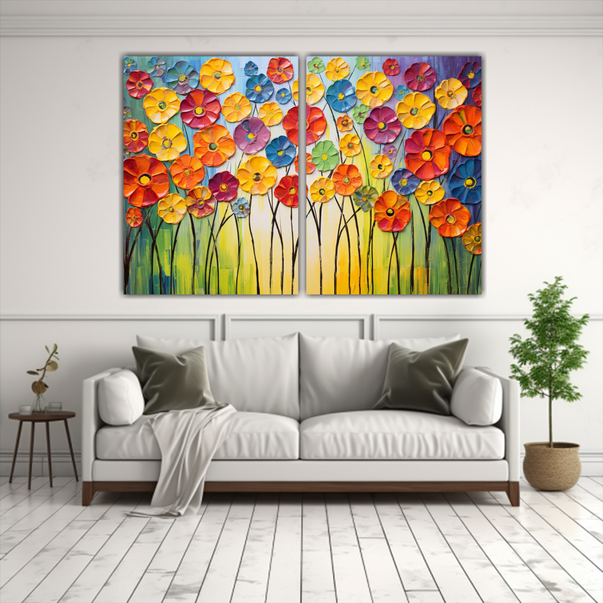 Este cuadro ‘Pintura lienzo líneas finas refinado estilo arcoíris flores tilo’ se vería espectacular en la sala de estar sobre un sofá de color neutro, creando un contraste vibrante y elegante Combínalo con cojines en tonos similares para lograr una decoración armoniosa
