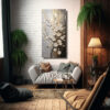 Coloca el cuadro de flores de cerezo doradas en tu sala de estar o comedor para crear un ambiente elegante y sofisticado Combínalo con muebles en tonos neutros como blanco, beige o gris para resaltar su belleza También puedes colocarlo en tu dormitorio para agregar un toque de romanticismo ¡Con este cuadro exclusivo de DecoCuadros, tu hogar lucirá siempre hermoso!