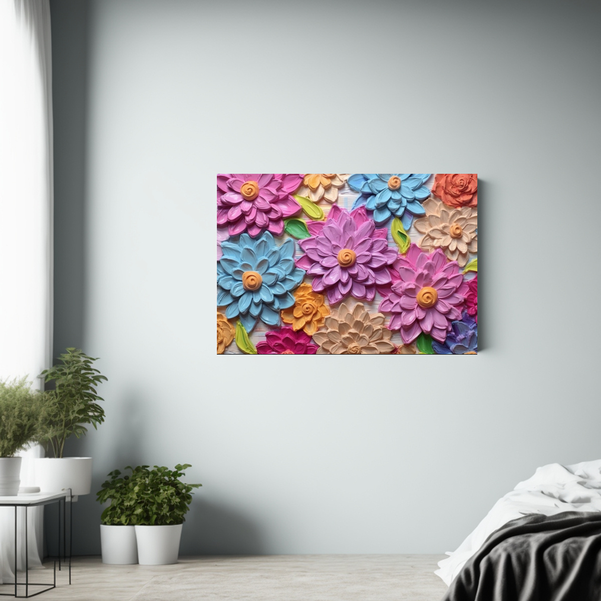 Amplia tu decoración con este vibrante Cuadro Lienzo Tela Canvas Naturaleza viva Impasto con amplias pinceladas de Dahlia en tonos Candy Envíos rápidos y gratuitos en Santiago, ¡Aprovecha! Descubre diseños únicos a precios accesibles