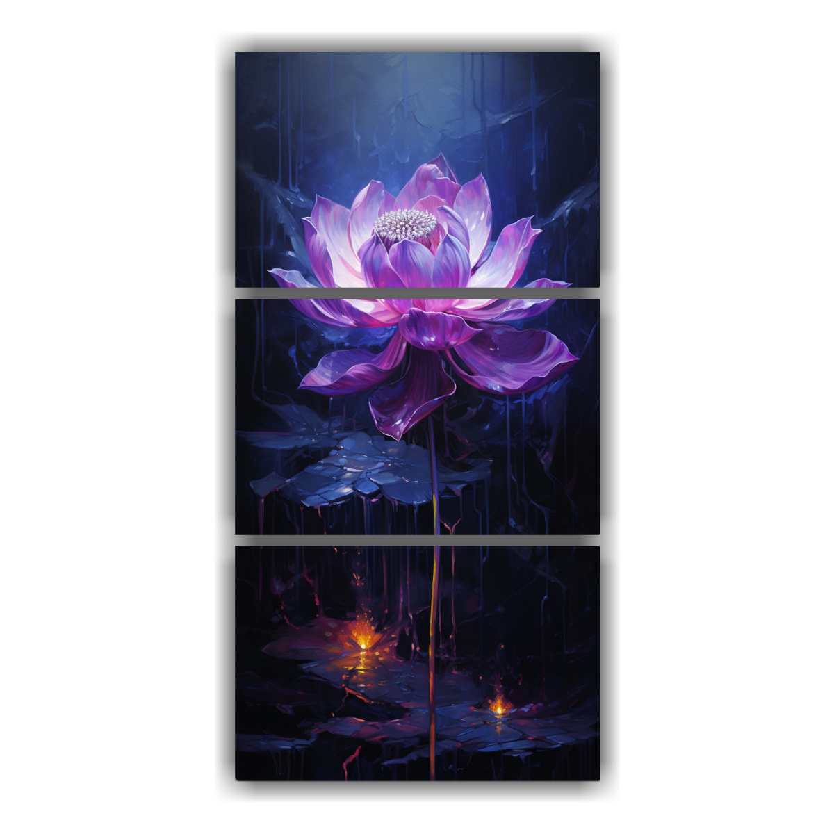 Descubre el impacto visual único del cuadro loto brillante en lienzo negro con tonos lila, azul marino y turquesa Renueva tus espacios con arte de calidad a precios accesibles ¡Envíos express a regiones disponibles!