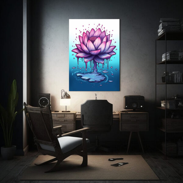 Pintura Lienzo Tela Composición Luminosa Flor De Loto Rosa Con Agua Estilo Detallado Ske.