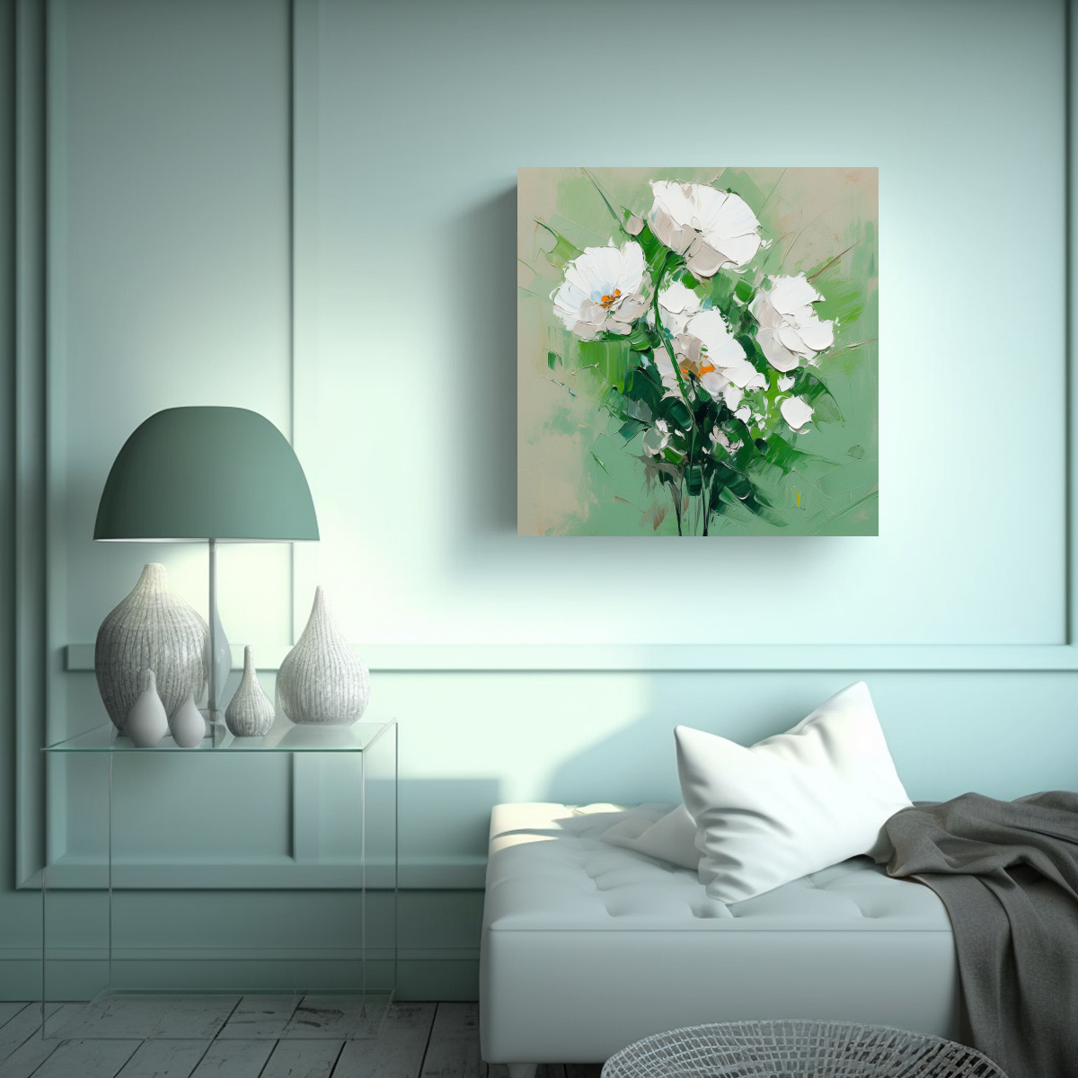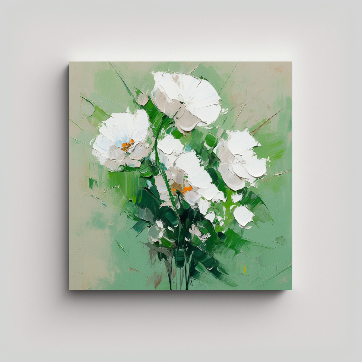 Pintura Lienzo Textura Flores Verdes Y Blancas En Decoración