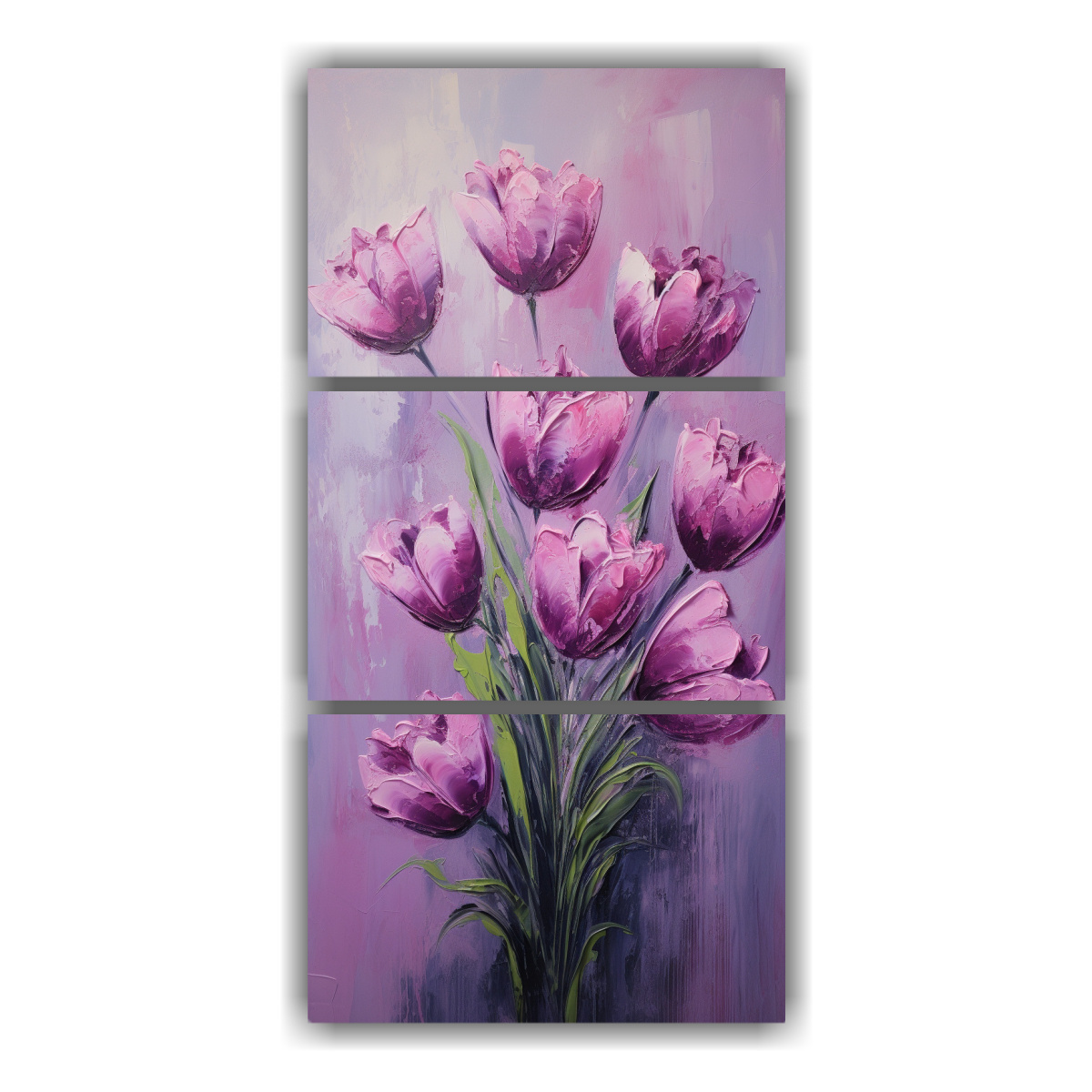 Pintura Lila De TULIPANES En Lienzo, Estilo Decorativo.