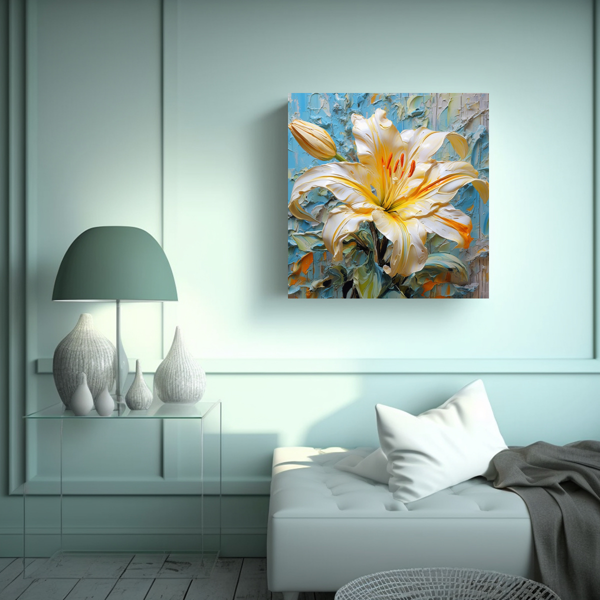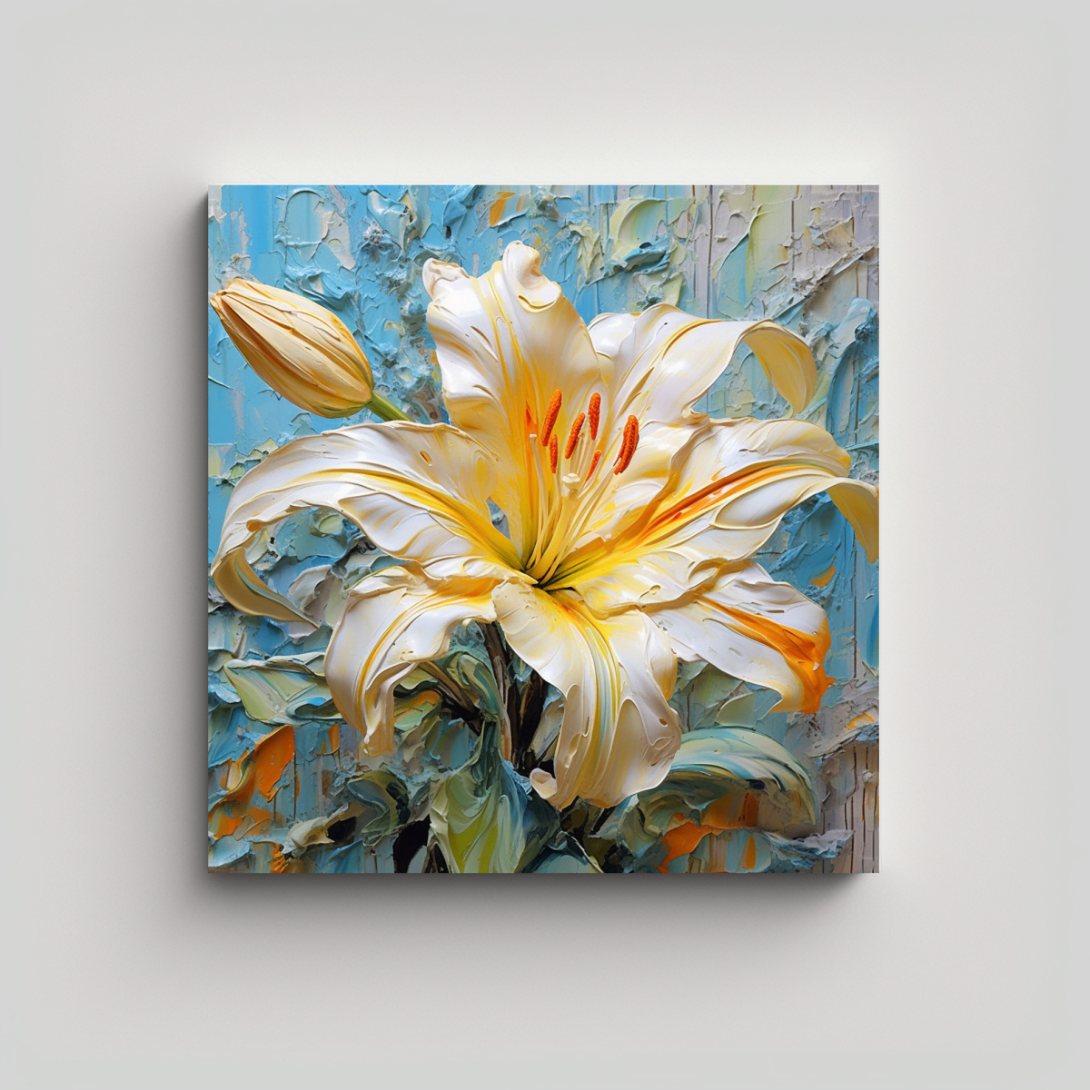 Pintura Lirio Moderno Vibrante, Lienzo Amarillo, Decoración Arte Regalo