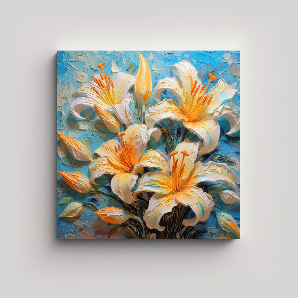 Pintura Lirios Coloridos Arte Abstracta Perspectiva Amarilla