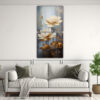 Este cuadro de la pintura loto dorado en lienzo estilo G sería perfecto para decorar una sala de estar o un dormitorio Combínalo con muebles en tonos neutros como blanco, gris o beige, y agrega cojines o cortinas en colores que resalten como el azul marino o el dorado También puedes colocarlo en un pasillo o recibidor para darle un toque de elegancia a tu entrada