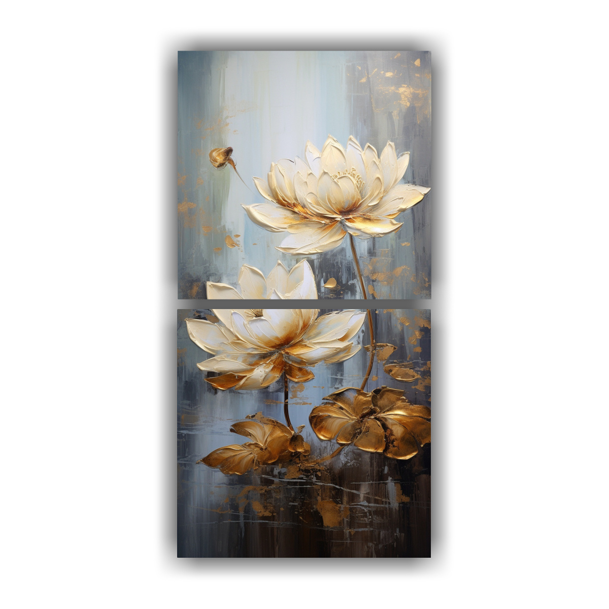 Pintura Loto Dorado En Lienzo Estilo G, Decoración De Arte Visual