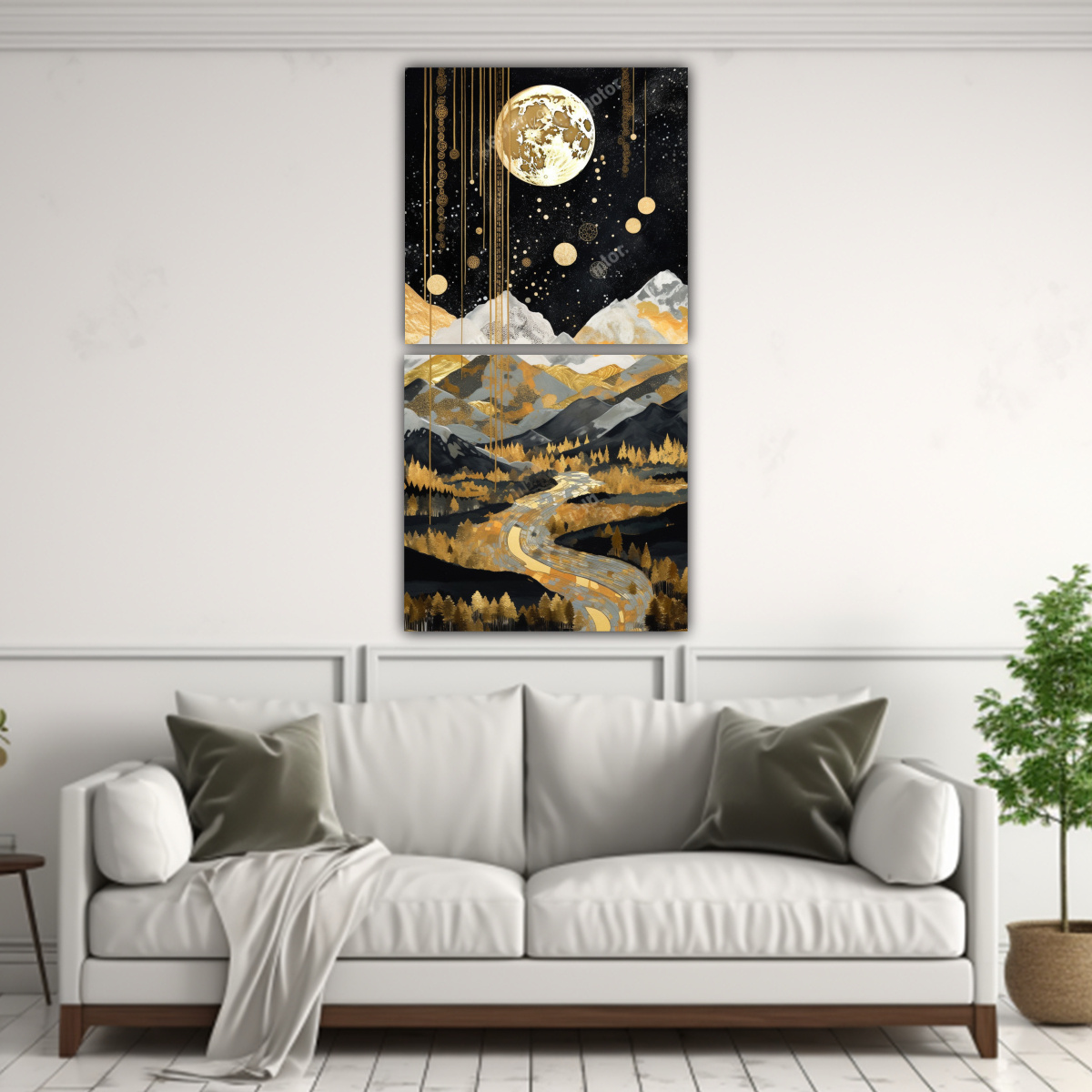 Pintura Lunar En Las Montañas Con Estilo De Profundidad Y Formas