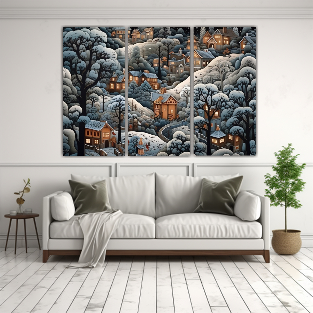 Renueva tu decoración con este moderno cuadro minimalista que destaca un árbol y pueblo en finas líneas Añade un toque de elegancia a tu hogar con esta obra de arte impresa en alta calidad ¡Decora con estilo y distinción!