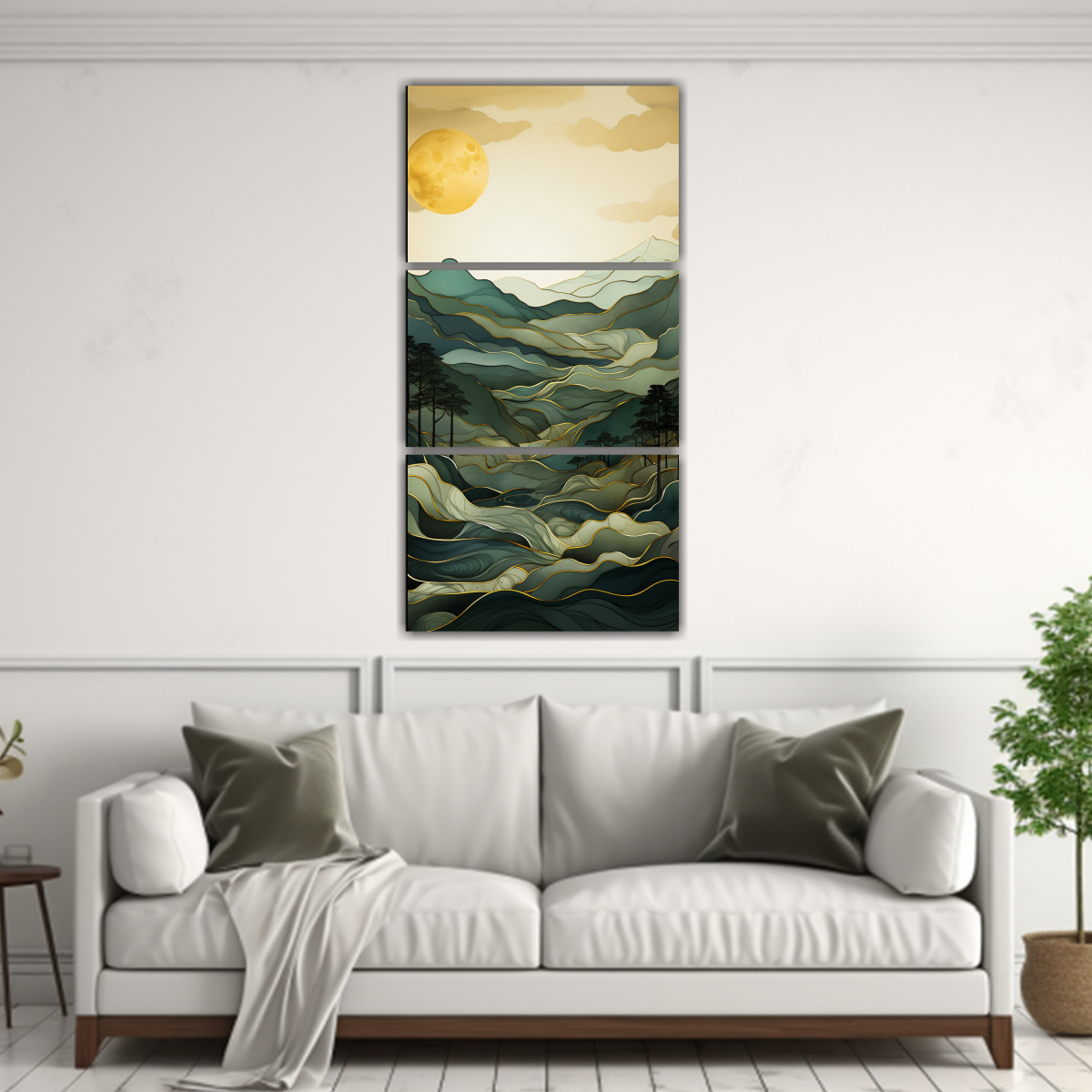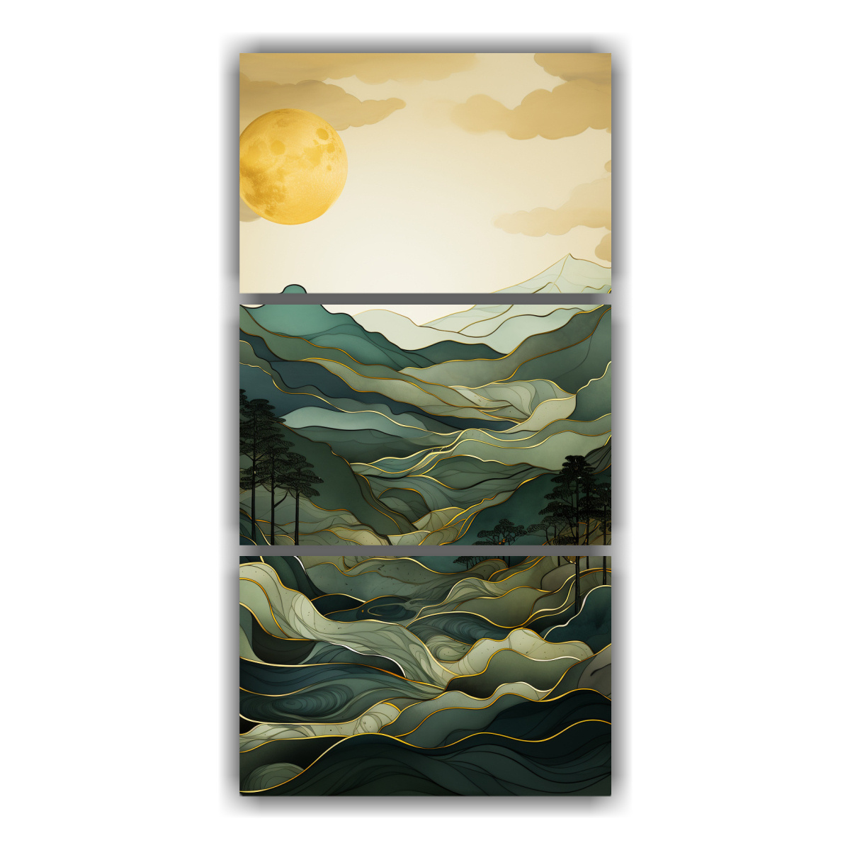 Pintura Minimalista De Montañas En Tres Telas En Bastidor.