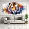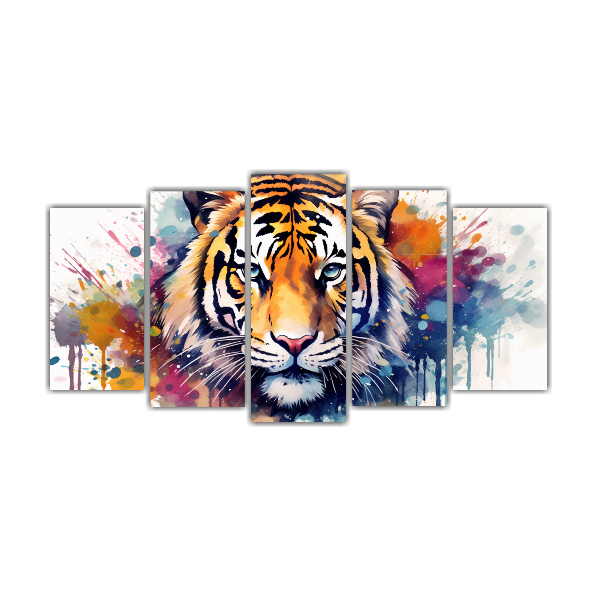 Pintura Moderna Colorida De Tigre En Acuarelas: Composiciones Vibrantes