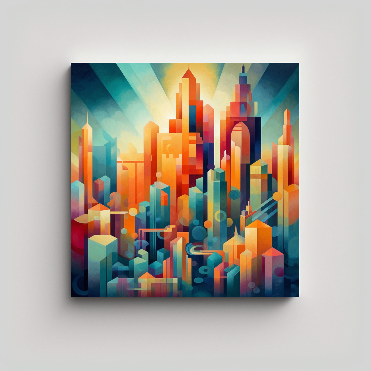 Pintura Moderna Cubista De Ciudad En Gradientes Lienzo Impreso