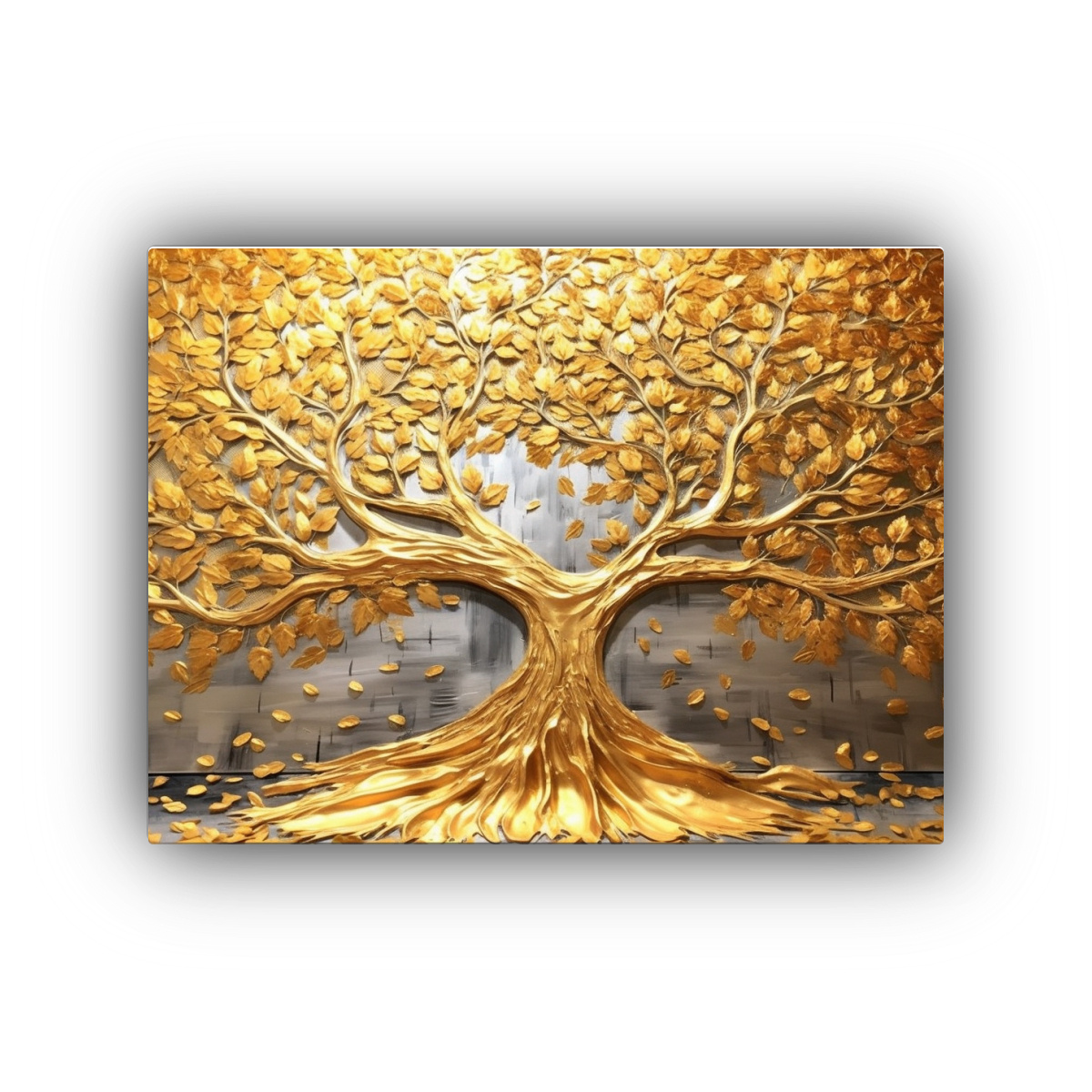Impresionante composición de un árbol de la vida en tonos dorados y plateados que añadirá elegancia a tu hogar Los diamantes plateados realzan la belleza de la obra Diseño exclusivo de DecoCuadros Añade un toque sofisticado a tu espacio con este cuadro único