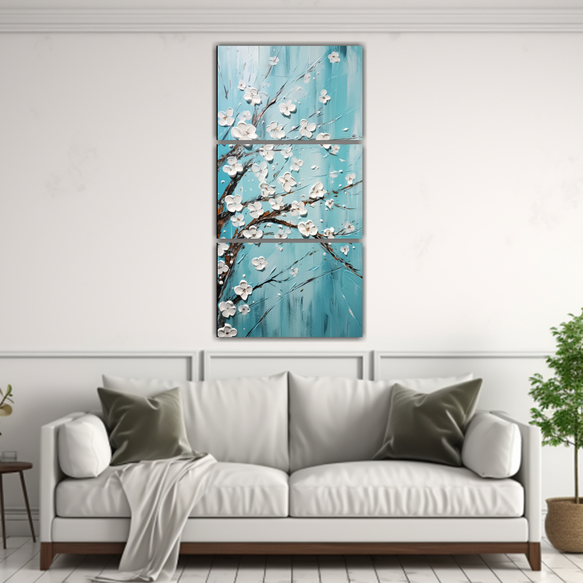 Pintura Moderna De Flores En Lienzo De Cerezo Turquesa Set De 3