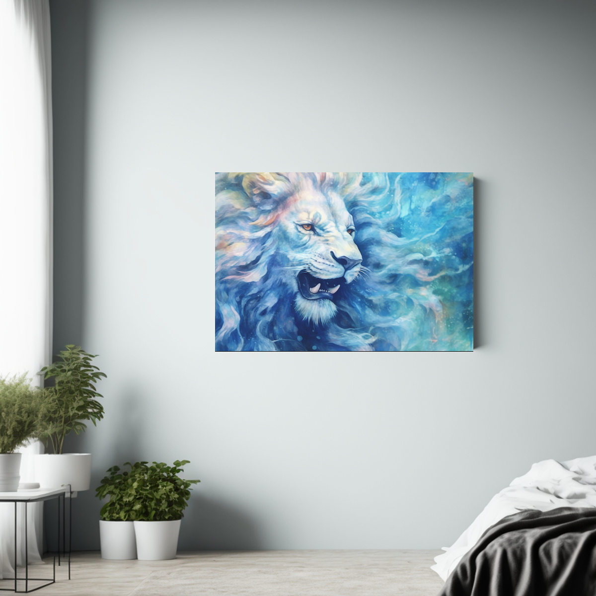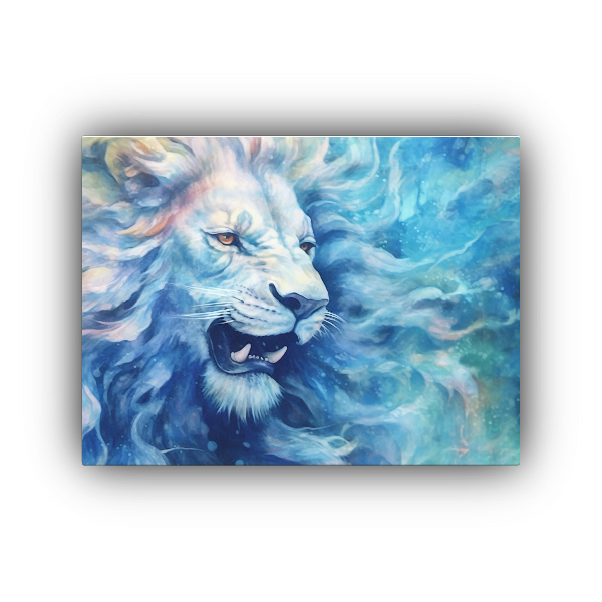 Pintura Moderna De Lienzo Aslan Rugiendo En Acuarela Azul