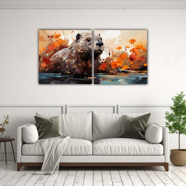 Pintura Moderna De Un Castor En Colores Rubí Y Dorados En Estilo Neo Pop.
