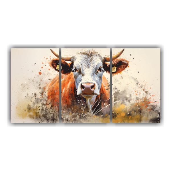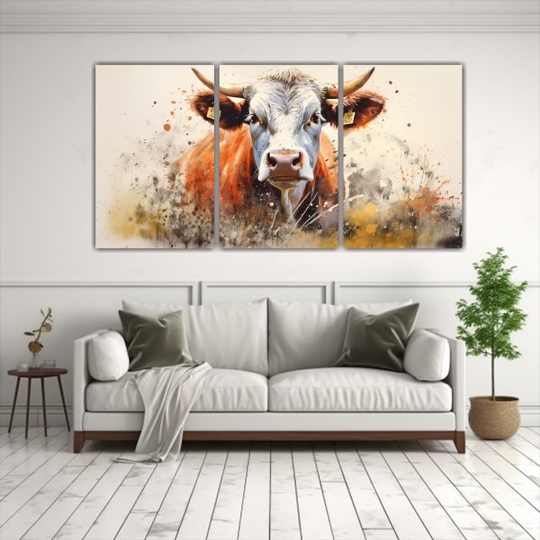 Este cuadro de una vaca Hereford en acuarelas coloridas es ideal para colocar en la sala de estar sobre un sofá de tonos neutros, creando un contraste moderno y llamativo También puedes ubicarlo en un pasillo largo para agregar un toque de color y estilo único