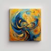Este cuadro abstracto azul y amarillo es perfecto para decorar la pared sobre la mesa de comedor en tu cocina Combínalo con accesorios en tonos dorados y azules para lograr un ambiente armonioso y sofisticado ¡Atrévete a darle un toque único a tu cocina!