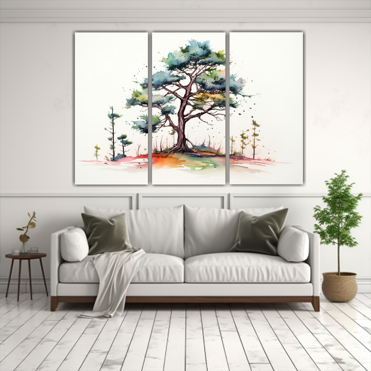 Este cuadro moderno surrealista de un pino escocés en acuarelas se vería espectacular en la sala de estar sobre un sofá de color neutro, creando un contraste armonioso Combínalo con cojines en tonos plateados, grises y turquesas para lograr una decoración moderna y sofisticada