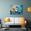 Para resaltar la belleza del cuadro Movimiento Adorable Oro y Azul Neo-noir, te recomiendo colocarlo en una pared de tonos neutros como blanco o gris para que los colores resalten Ideal para decorar tu sala de estar o estudio