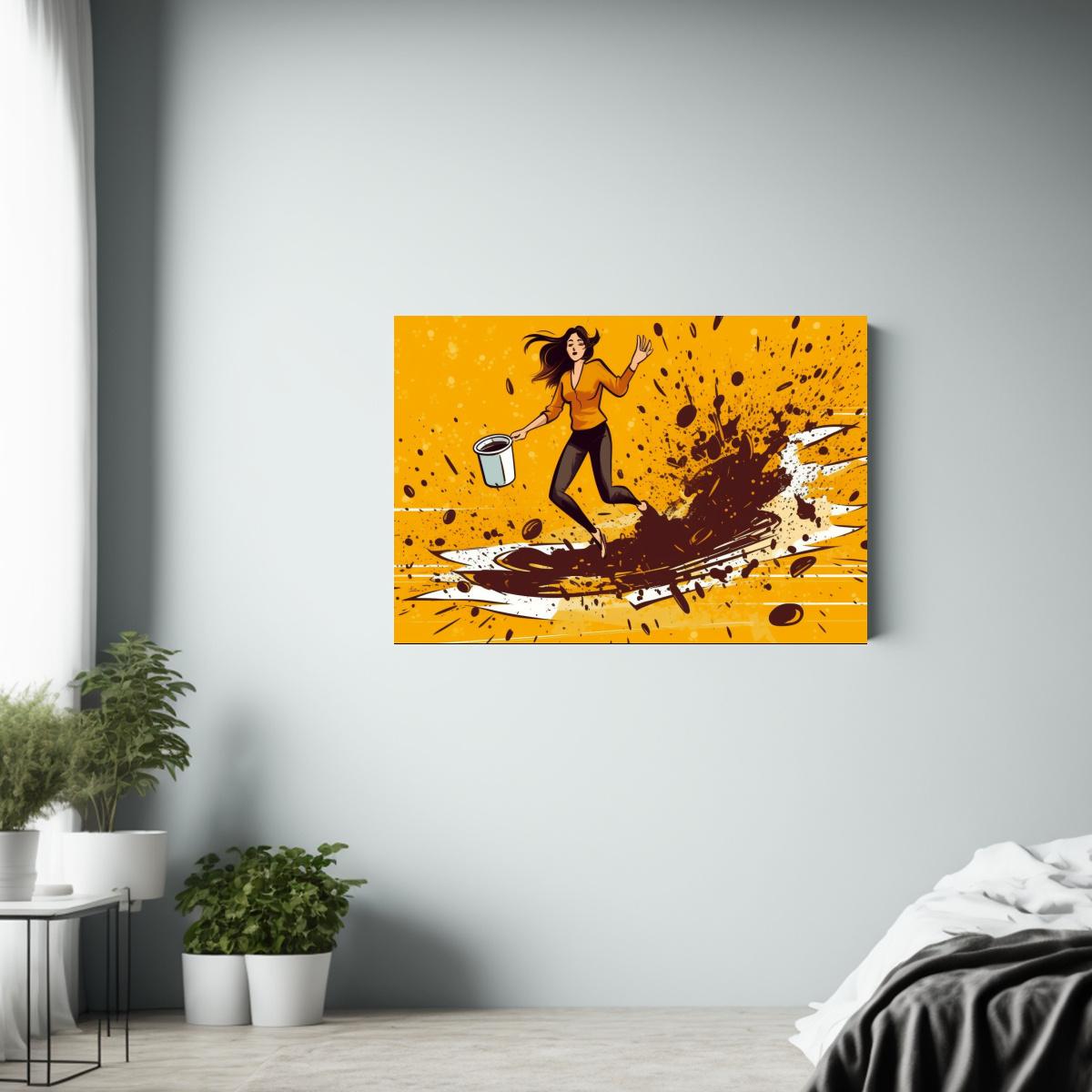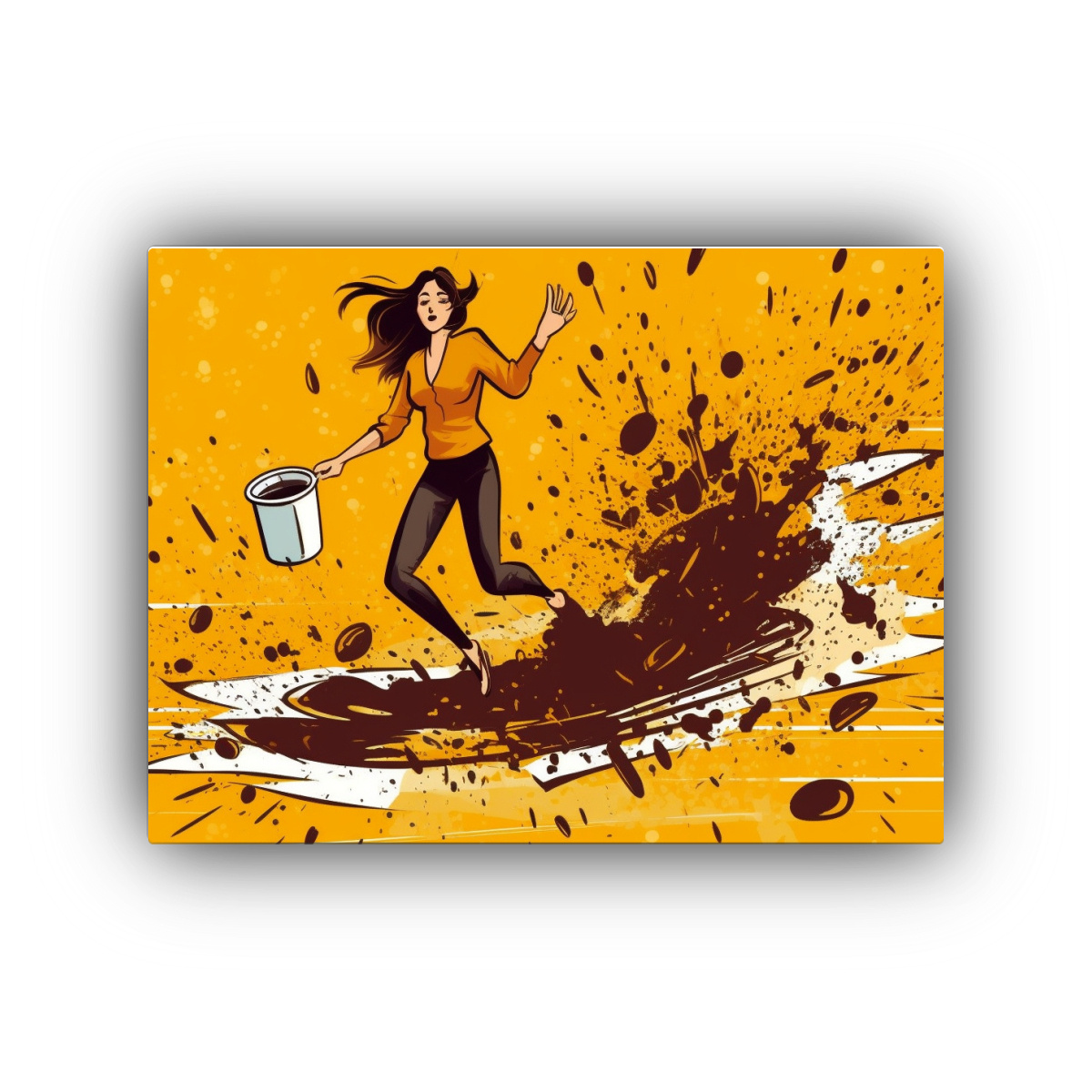 Pintura Mujer Derrama Café Al Caer Con Taza