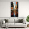 Coloca este cuadro multicolor de paisaje urbano fragmentado en tu sala de estar para crear un ambiente moderno y vibrante Combínalo con muebles en tonos neutros como gris y blanco para resaltar aún más su impacto visual ¡Sorprende a tus invitados con este cuadro de diseño exclusivo de DecoCuadros!