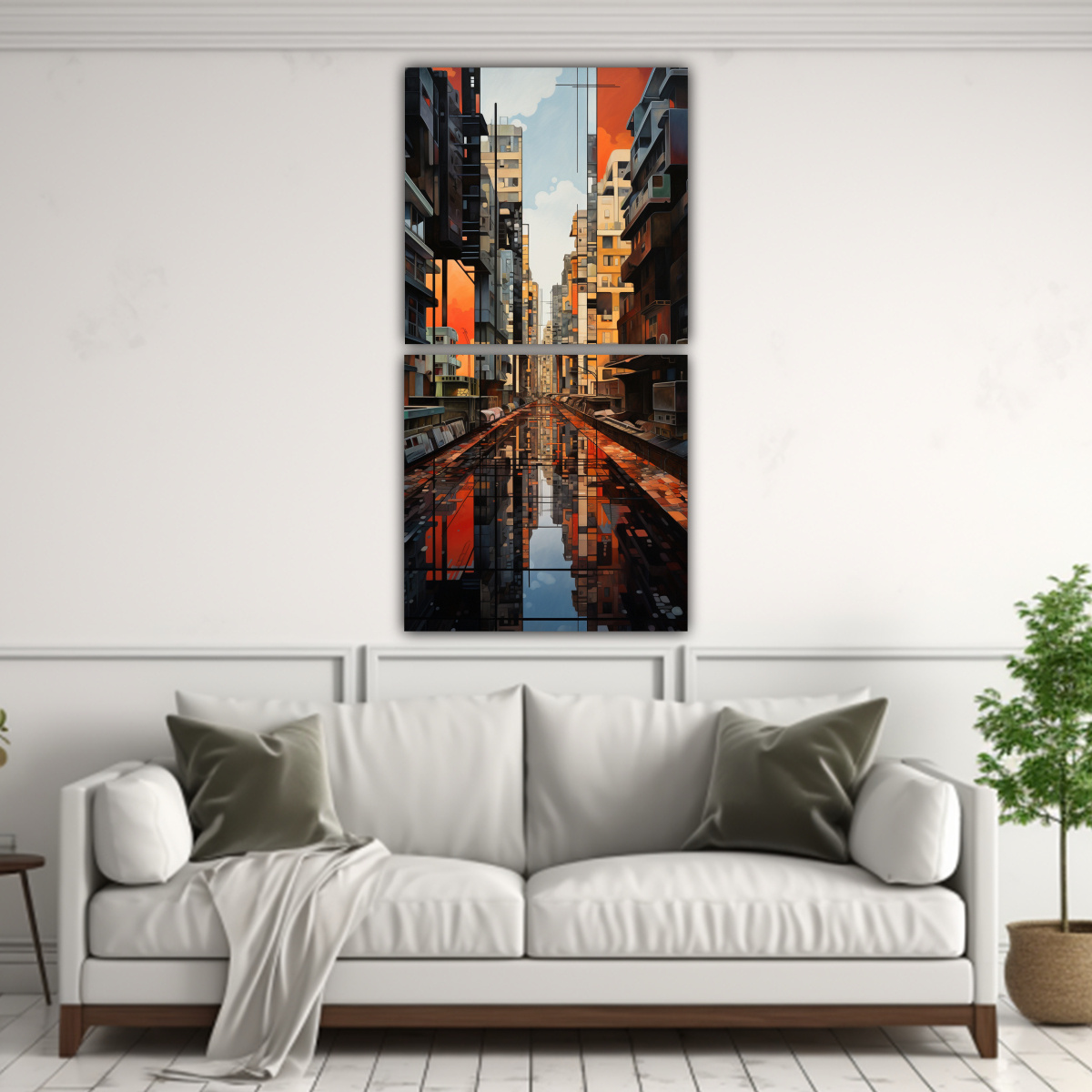 Decora tus espacios con el diptico cuadro multicolor de paisaje urbano fragmentado de DecoCuadros Con tonos plateados, dorados, negros y más, este cuadro impresionará a todos tus visitantes Calidad y precios económicos garantizados Atrévete a tener el mejor diseño exclusivo en tu pared Envío gratis en Santiago y envíos express a regiones