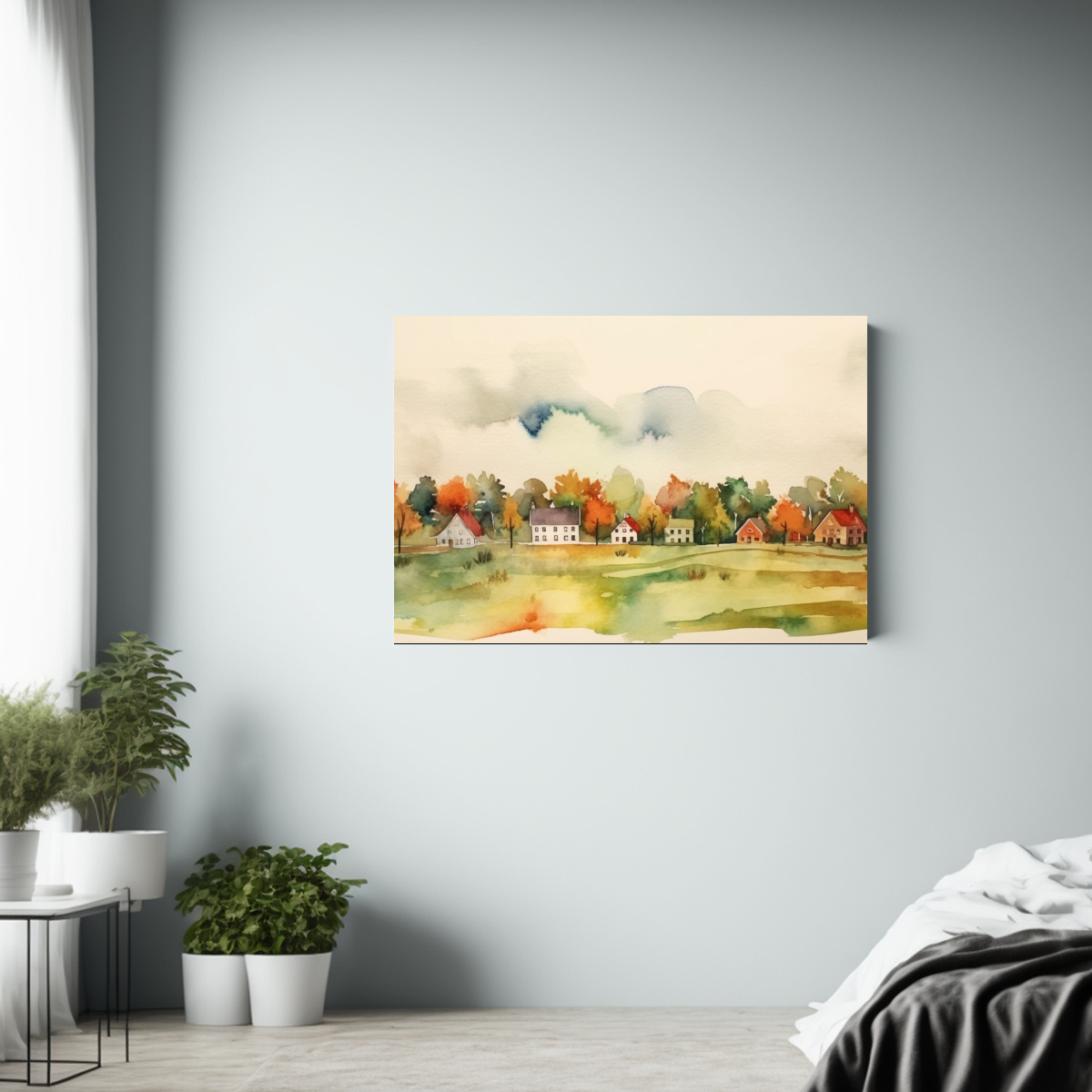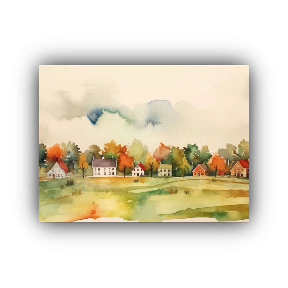 Pintura Mural Abstracta Acuarela Minimalista De Un Pequeño Pueblo