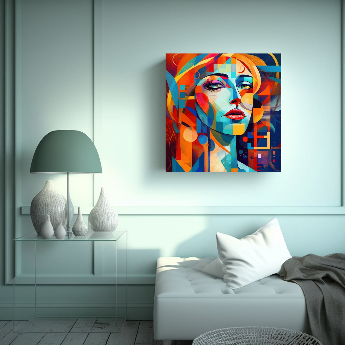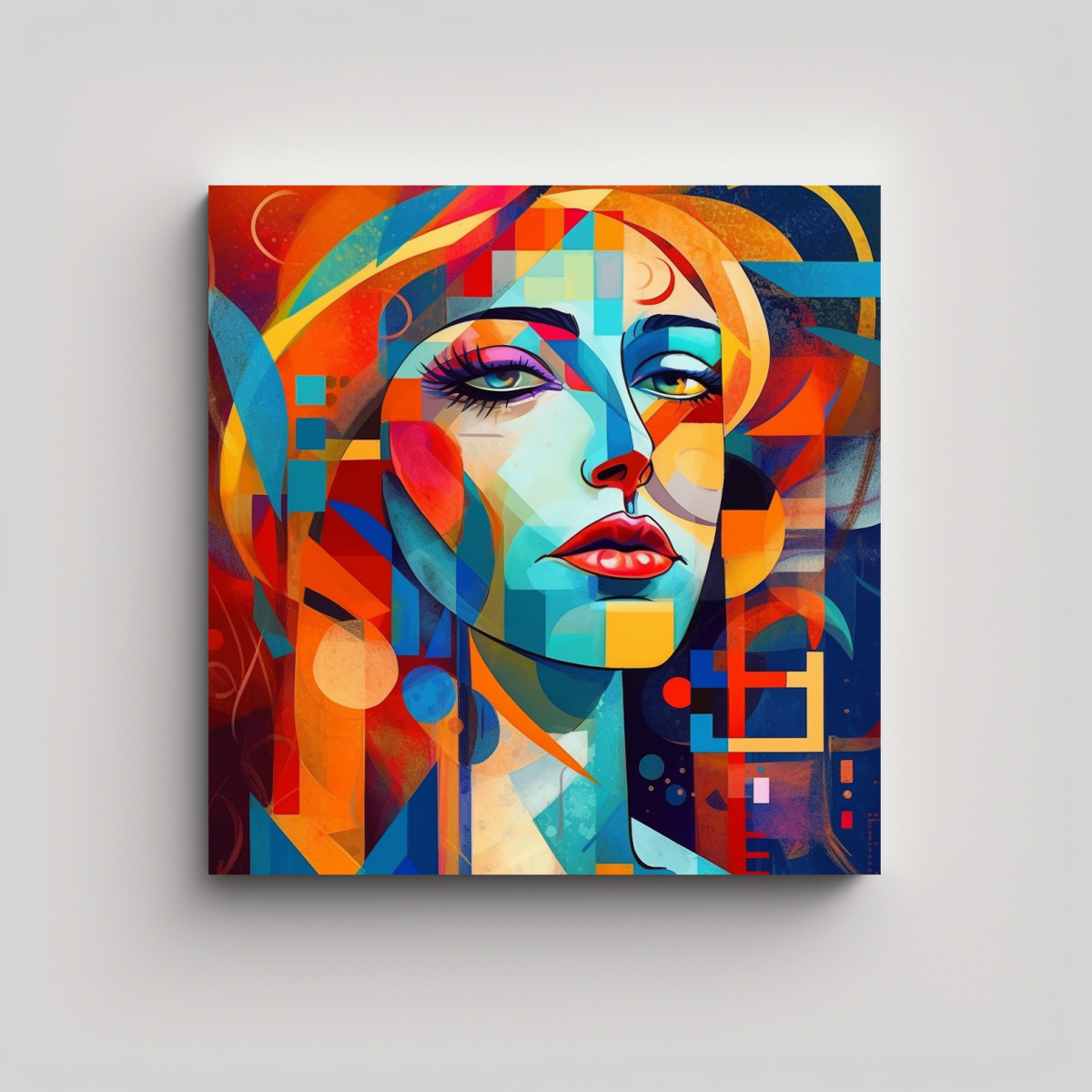 Este cuadro abstracto inspirado en el cubismo es perfecto para decorar cualquier ambiente con elegancia y sofisticación Puedes colocarlo en la sala de estar, creando un punto focal en la pared principal Combina a la perfección con muebles de colores neutros, como gris claro o blanco, agregando un toque de color y modernidad al espacio También puedes colocarlo en el dormitorio, sobre la cama, para darle un toque artístico y vibrante a tu oasis de descanso ¡Atrévete a decorar con estilo!
