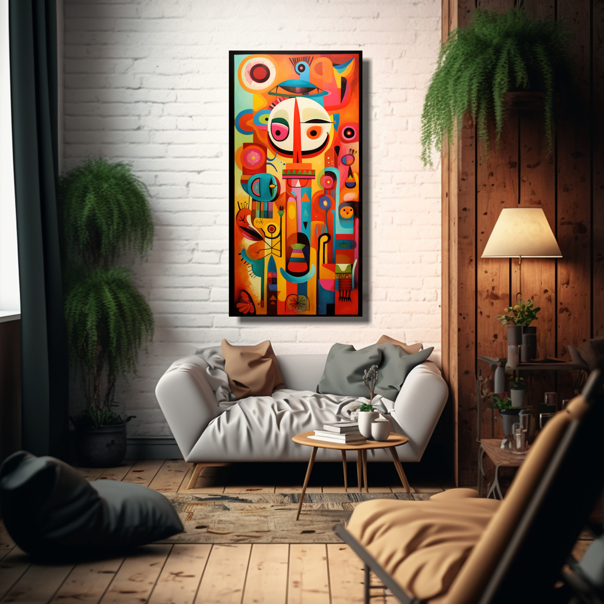 Este cuadro mural abstracto reinterpretando el arte popular mexicano es perfecto para decorar tu sala de estar Colócalo sobre un sofá de tonos neutros para resaltar su brillo y contraste Combínalo con cojines en colores similares para crear un ambiente armonioso y sofisticado