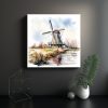 Pintura Mural Alta Calidad Molino De Viento Holandés Junto Al Río En Fondo Blanco
