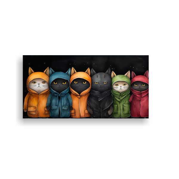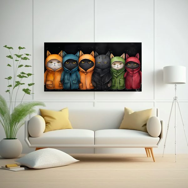 Agrega un toque único a tu hogar con esta obra de arte mural con un patrón de gatos vestidos con suéteres en colores vibrantes Envío gratis en Santiago y entregas rápidas
