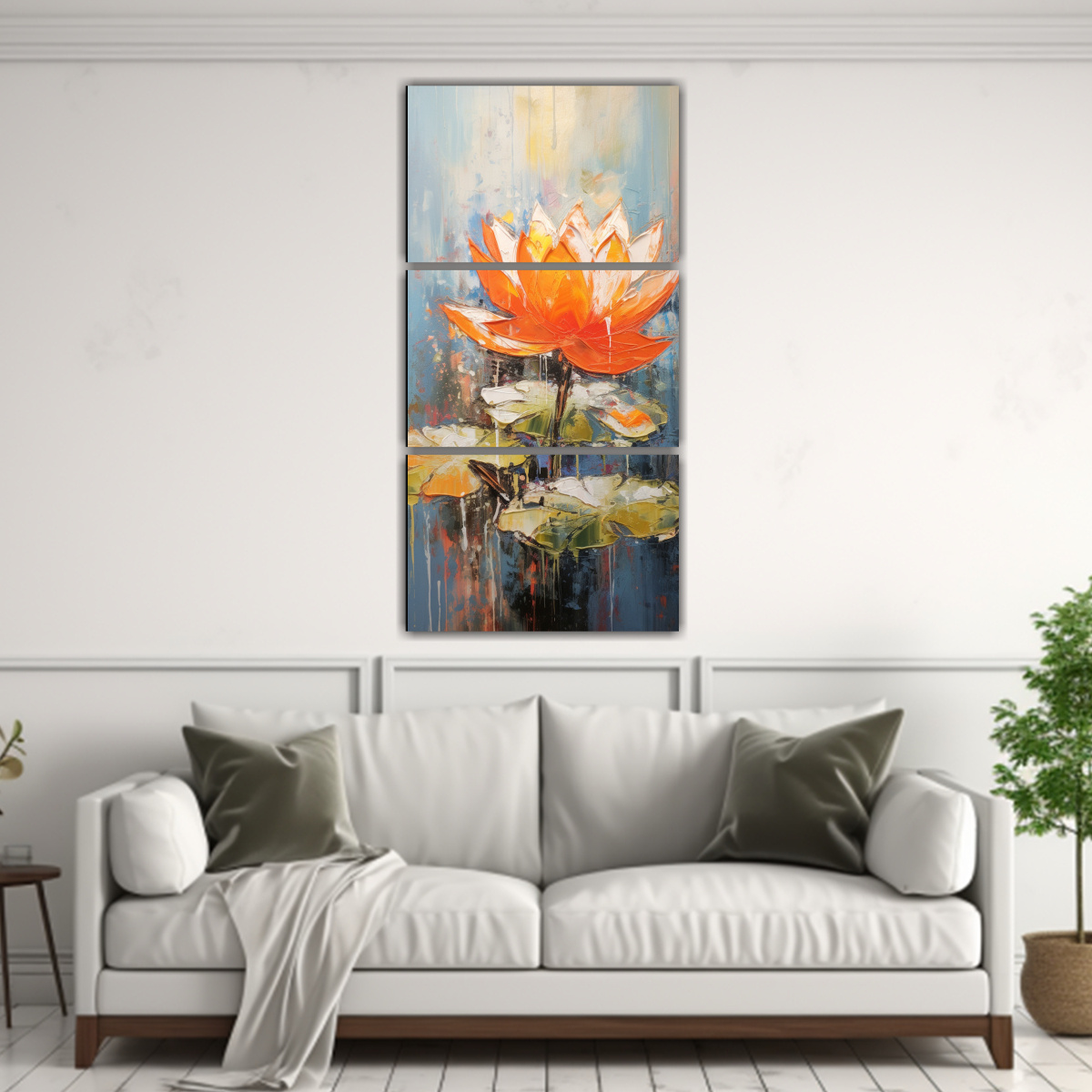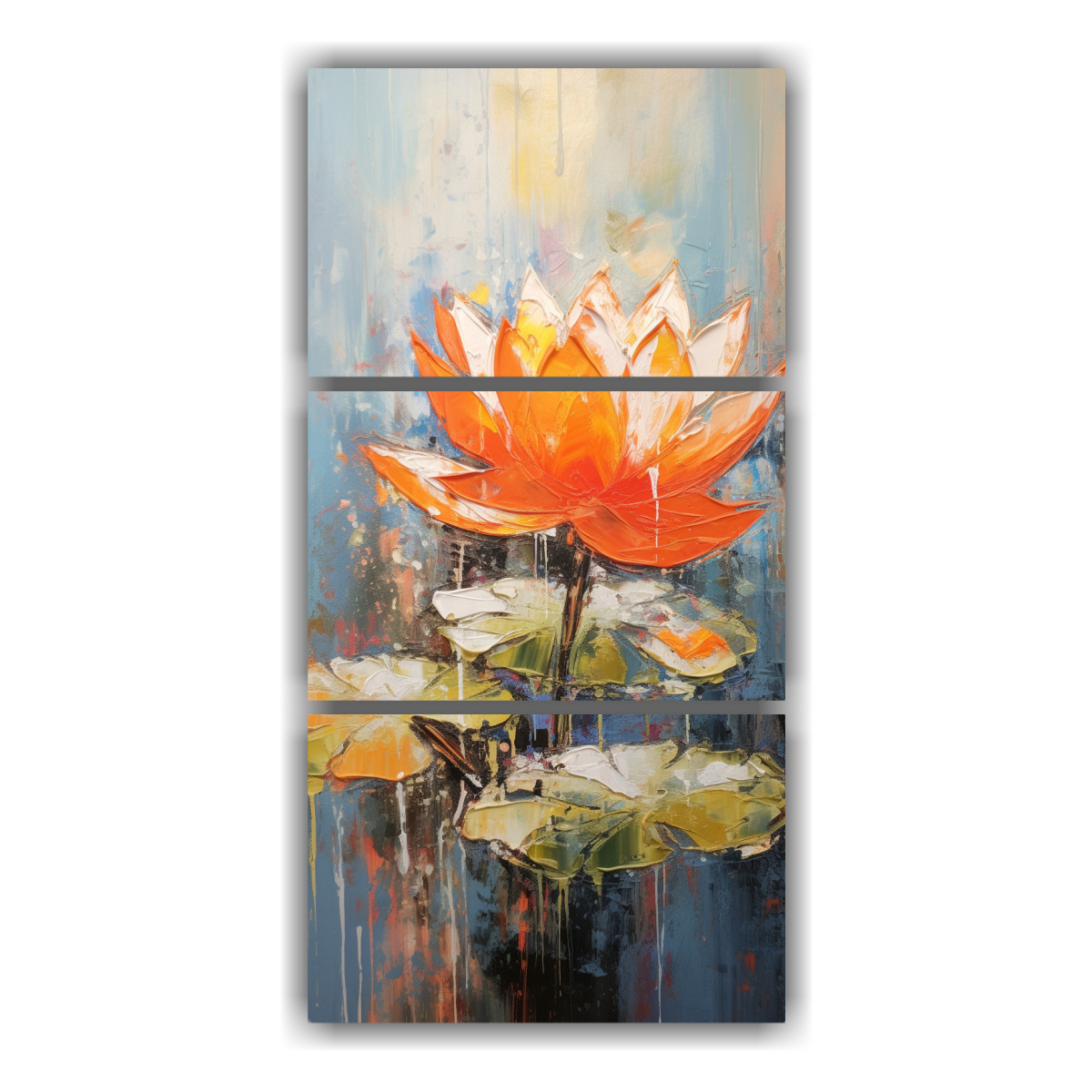 Pintura Mural Con Patrón Intenso De Regalo: Loto Naranja En Lienzo
