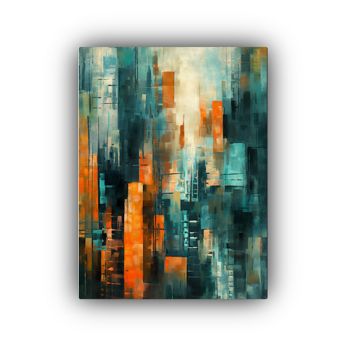 Pintura Mural Cuadro De Arte Urbano, Paisaje Urbano Abstracto En Tonos Turquesa Y Naranja