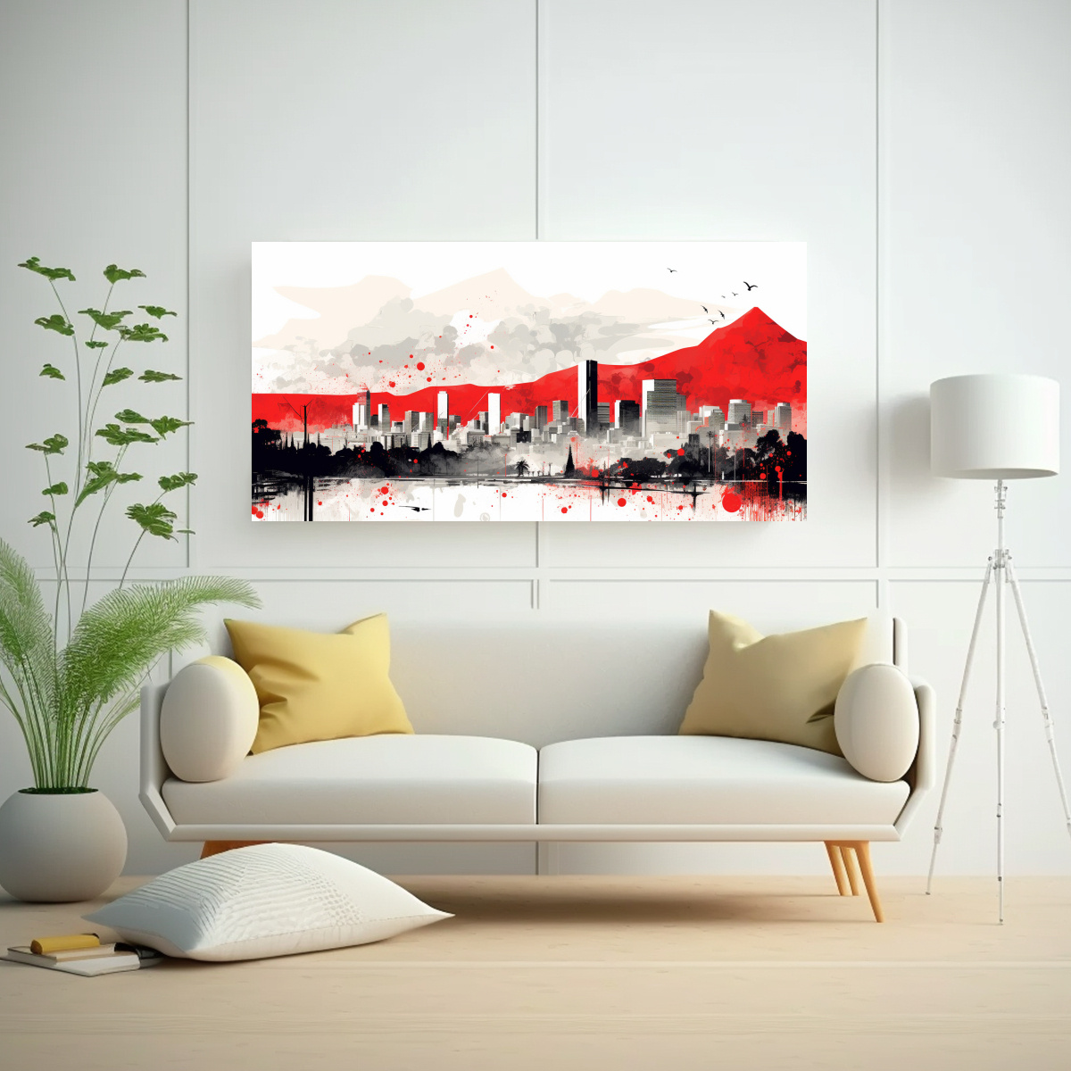 La Pintura mural de Canva en Santiago en blanco y rojo estilo neonoir es ideal para crear un ambiente moderno y sofisticado Combina los colores azul marino, carmesí, beige, gris, plateado y coral Asegúrate de colocarlo en un lugar estratégico para resaltar su belleza