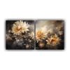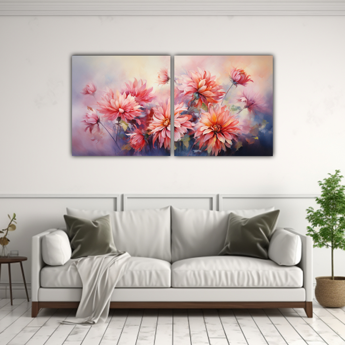 Este cuadro de composiciones con crisantemos rojos y dorados es perfecto para decorar una sala de estar o un dormitorio Puede colocarse sobre un sofá o una cama, creando un punto focal en la habitación Combínalo con otros elementos decorativos en tonos plateados, azul marino grisaceo y coral para lograr un ambiente sofisticado y elegante