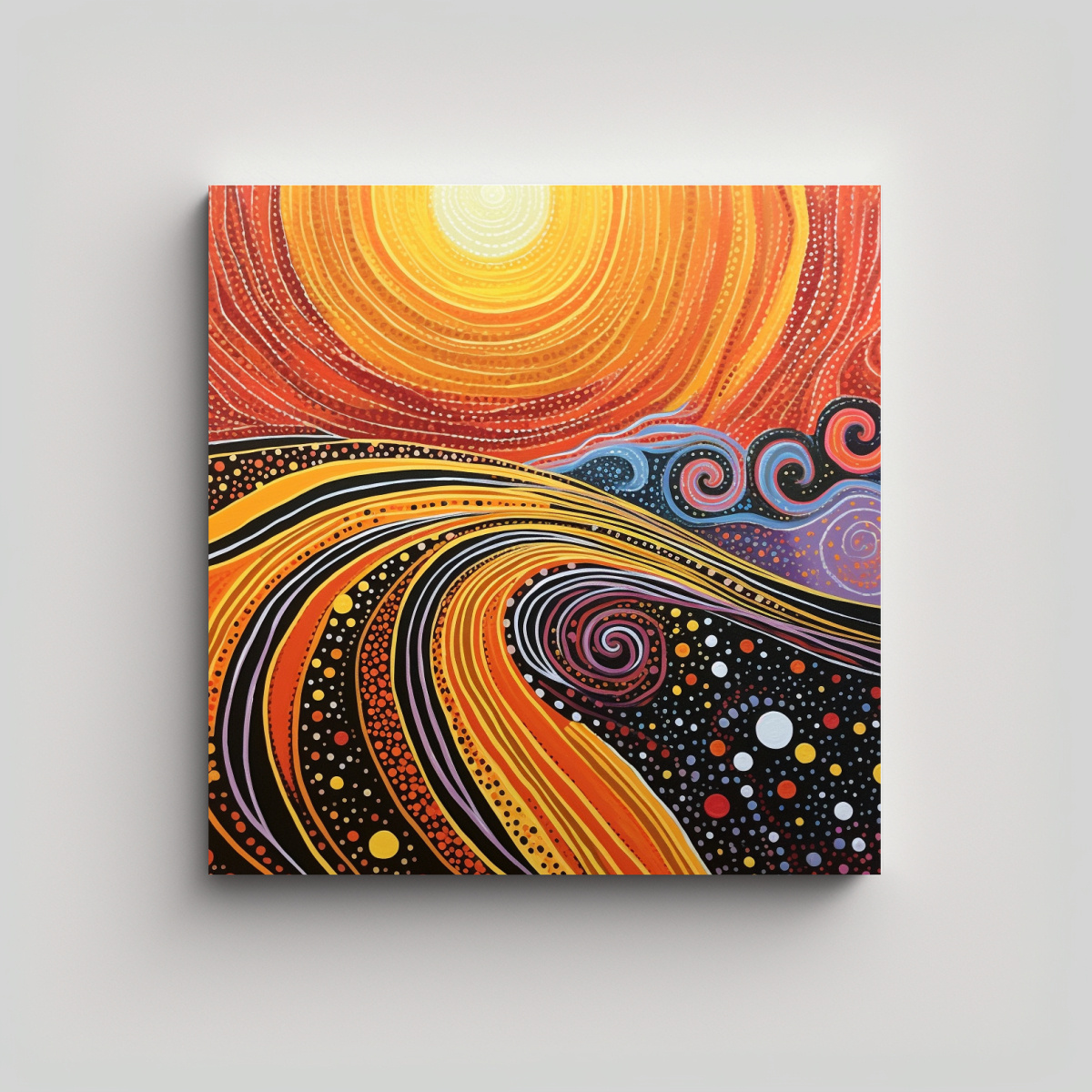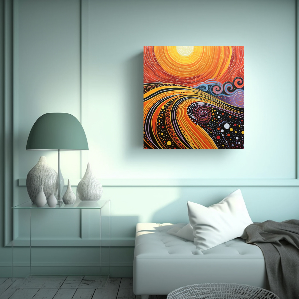 Agrega un toque de equilibrio visual a tu espacio con nuestra pintura mural de arte aborigen Diseño exclusivo, alta calidad y precios bajos Envío gratis en Santiago y envíos express a regiones