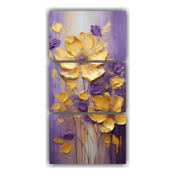 Pintura Mural De Flores Púrpuras Y Doradas En Lienzo De Alta Calidad