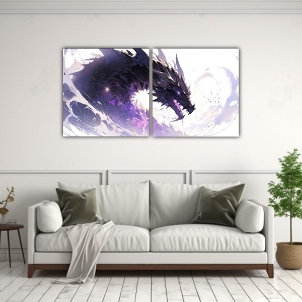 Pintura Mural: Dragón En Acuarelas Y Colores Púrpura Estilo Neonoir.