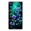 Pintura Mural Espectacular En Tres Lienzos Con Flores En Tonos Cyan