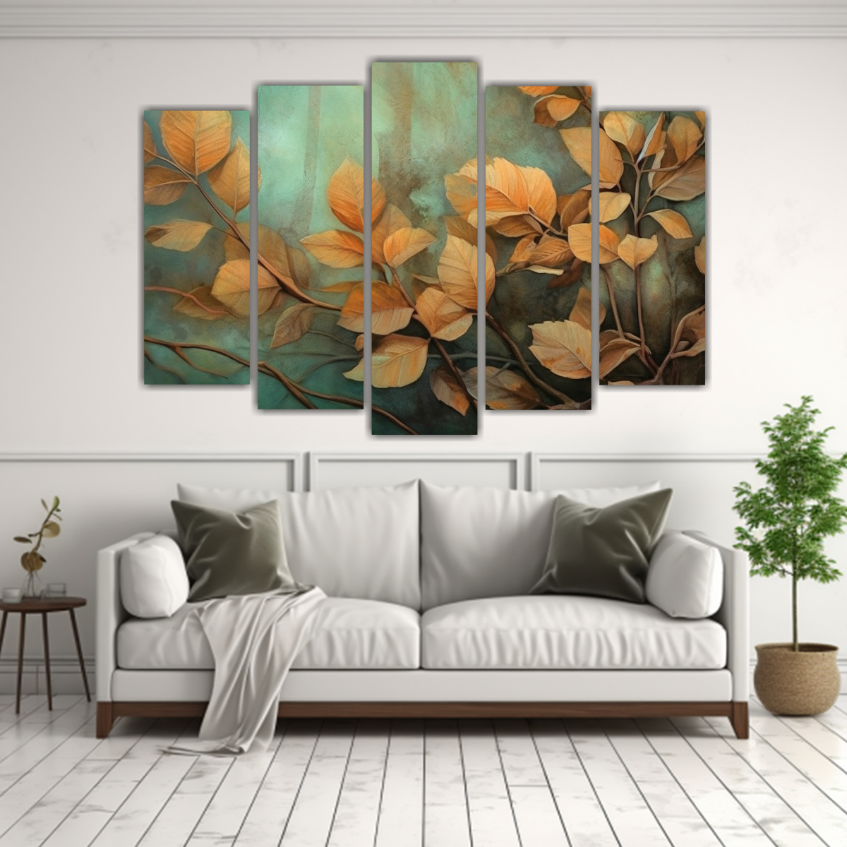 Pintura Mural Estilo Galería: Hojas De Cobre Y Verdigris Con Bruma.