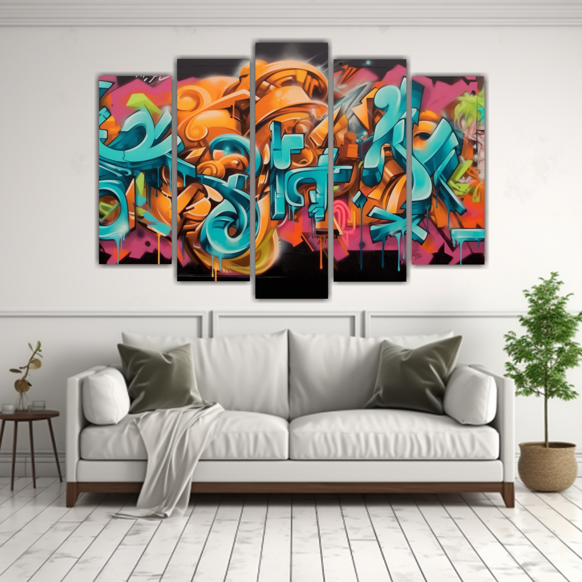 Para lograr un ambiente urbano y moderno, coloca este cuadro graffiti letras callejero en la pared principal de tu sala de estar Acompáñalo con muebles en tonos neutros, como gris claro o beige, para crear un contraste que resalte la intensidad de sus colores ¡Tu espacio lucirá lleno de energía y estilo!
