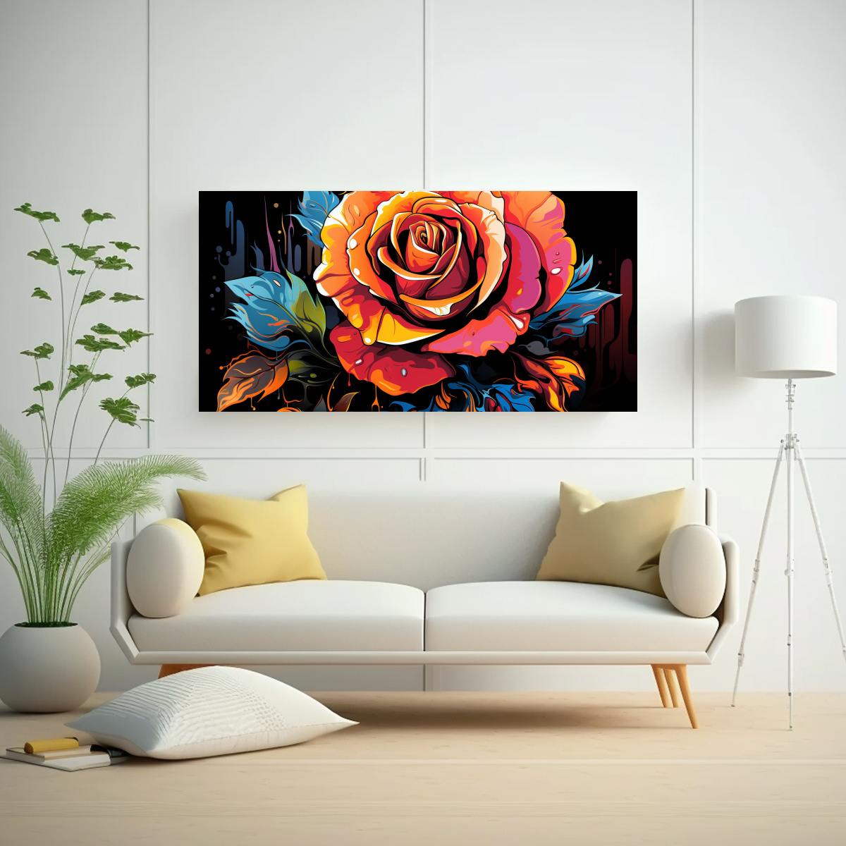DecoCuadros te ofrece el cuadro mural graffiti Diseño impresionante de una rosa floral Aporta un toque de estilo y modernidad a cualquier espacio de tu hogar Nuestros cuadros están impresos en tela de alta calidad y cuentan con bastidores de madera que los hacen duraderos y resistentes Con nuestra amplia variedad de diseños exclusivos, encontrarás el cuadro perfecto para tu decoración Además, ofrecemos la mejor calidad del mercado a precios económicos No pierdas la oportunidad de tener un cuadro único y original en tu hogar ¡Compra ahora y disfruta de las entregas rápidas y gratuitas en Santiago y envíos express a regiones!