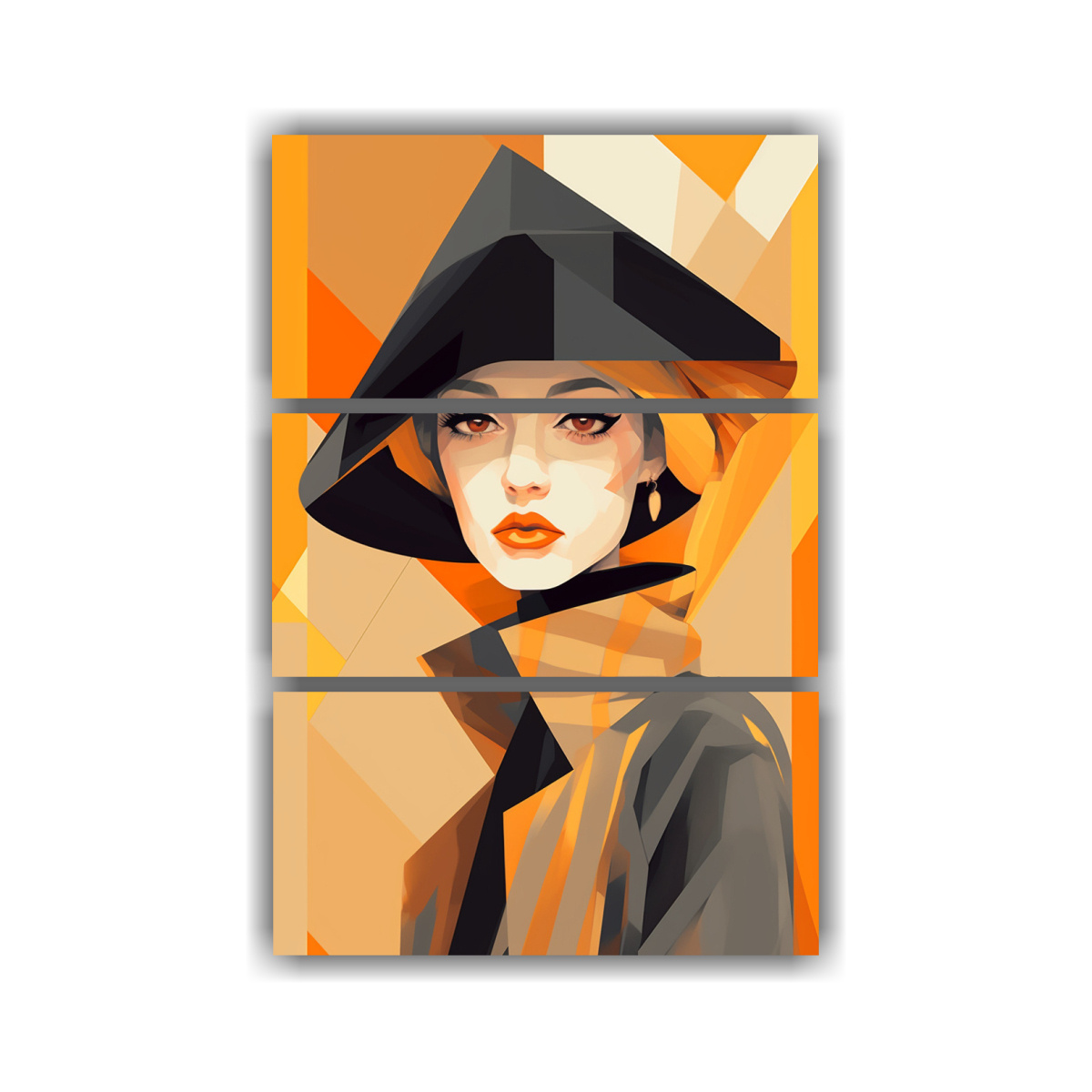Pintura Mural Moderna De Una Chica Cool Con Ojos Naranjas En Fondo Plano Cuadro Geométrico De Decoración En Lienzo (Set 3)
