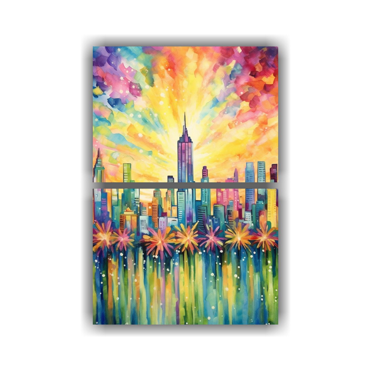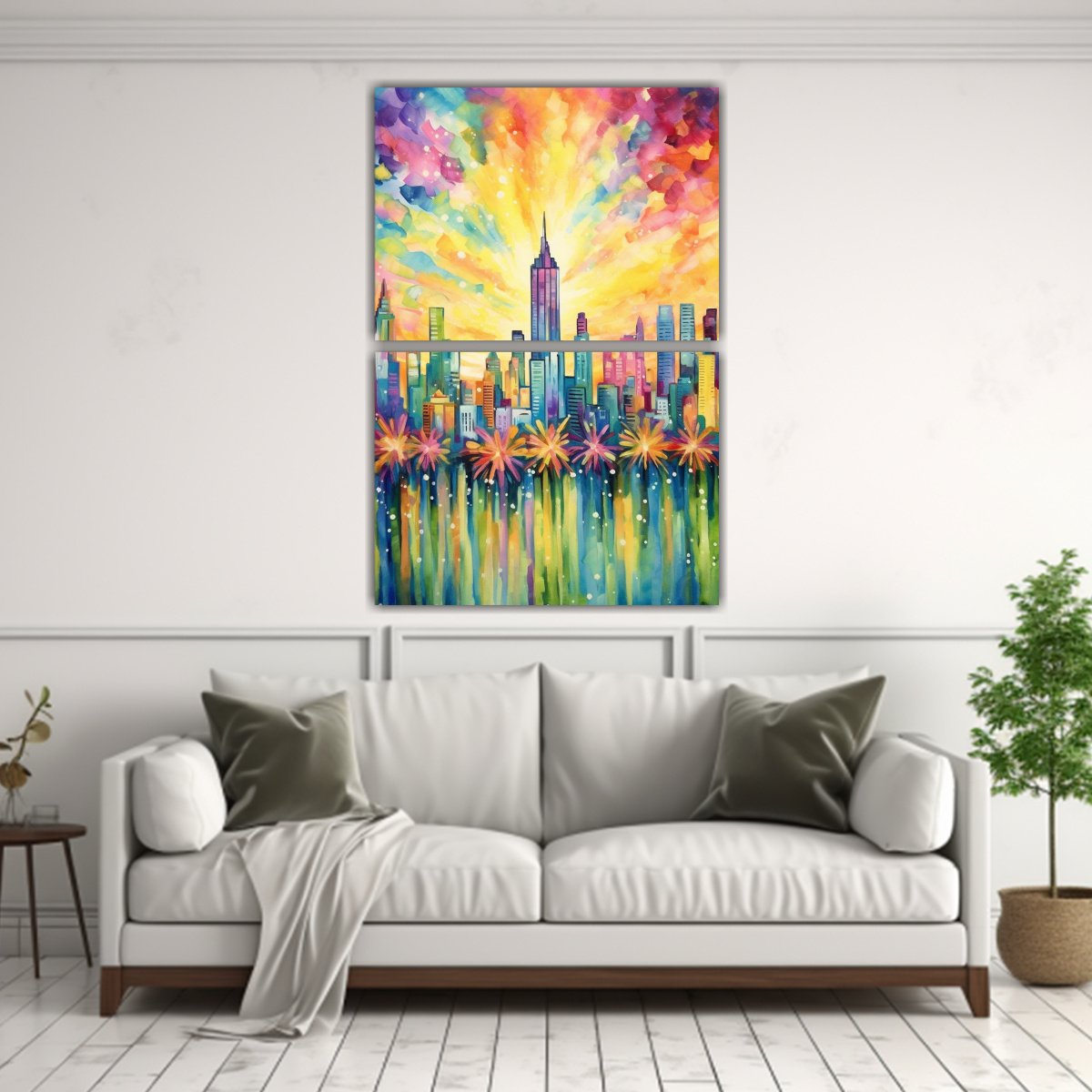 Este cuadro sería perfecto para decorar una sala de estar o un estudio Puedes colocarlo sobre un sofá o una mesa auxiliar para crear un punto focal vibrante en la habitación Combínalo con cojines en tonos grises y amarillos para crear una paleta de colores coordinada