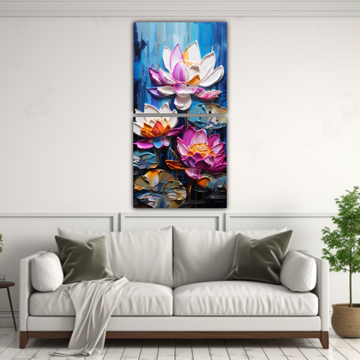 Pintura Mural Vibrante De Loto En Lienzo Set 2 Artes Decorativo