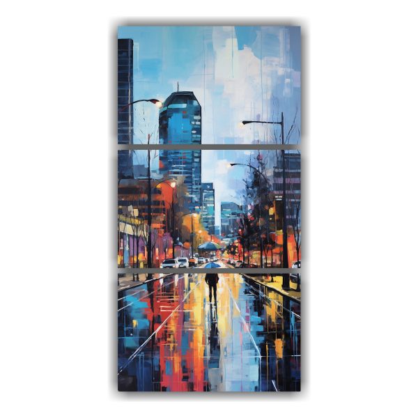 Decora tus espacios con este exclusivo cuadro en tres telas que captura la esencia de la ciudad Con detalles en tonos vibrantes y elegantes, este cuadro es ideal para crear un ambiente moderno y sofisticado Envíos express a regiones disponibles