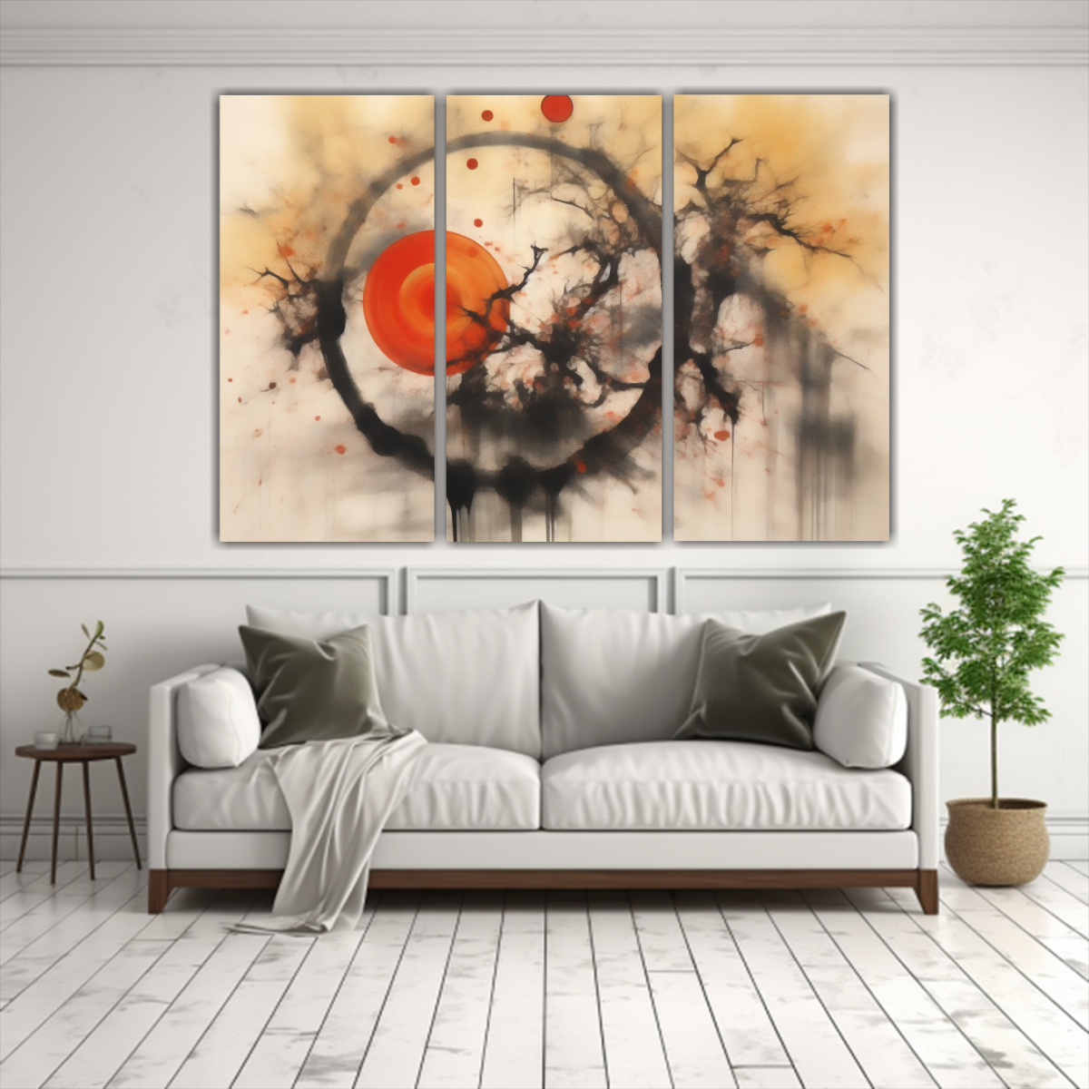 Este cuadro es ideal para colocar en la sala de estar sobre un sofá gris, creando un contraste elegante y sofisticado Combínalo con cojines en tonos beige y plateado para una decoración armoniosa y moderna