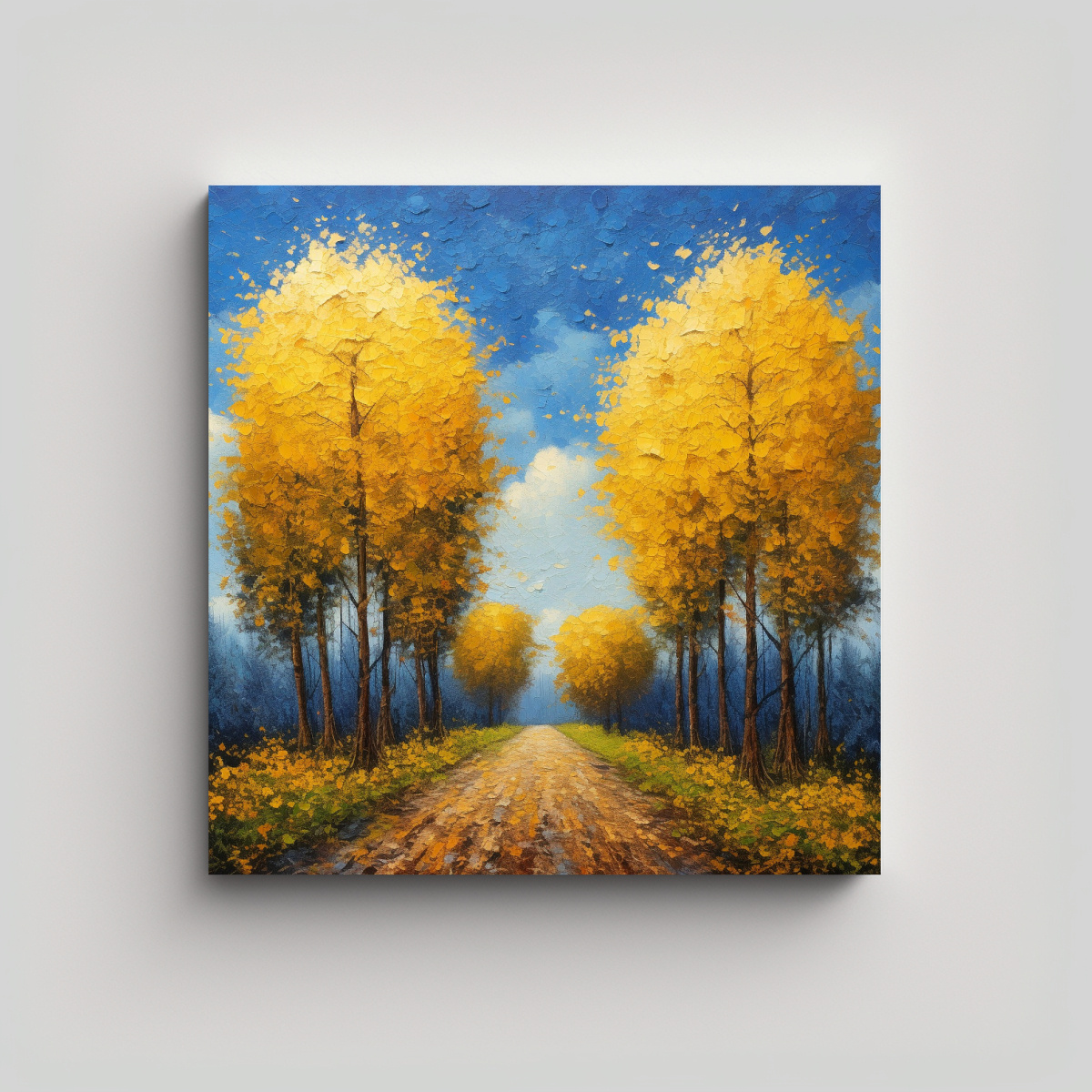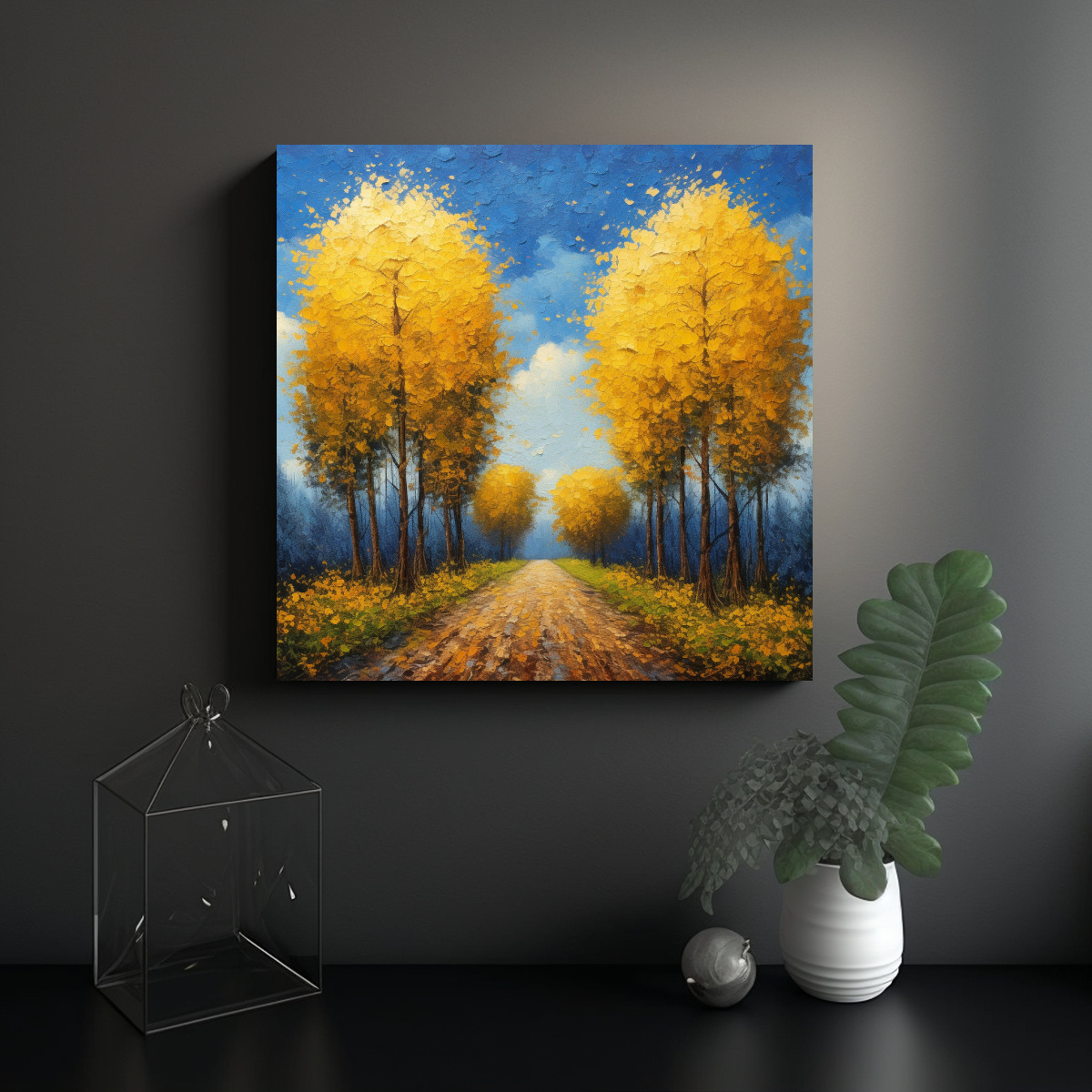 Coloca este cuadro en el salón principal de tu hogar para crear un punto focal impactante Combínalo con muebles de colores neutros como beige o blanco para resaltar su belleza y añadir calidez a la habitación ¡Atrévete a darle a tu espacio un toque de elegancia otoñal!