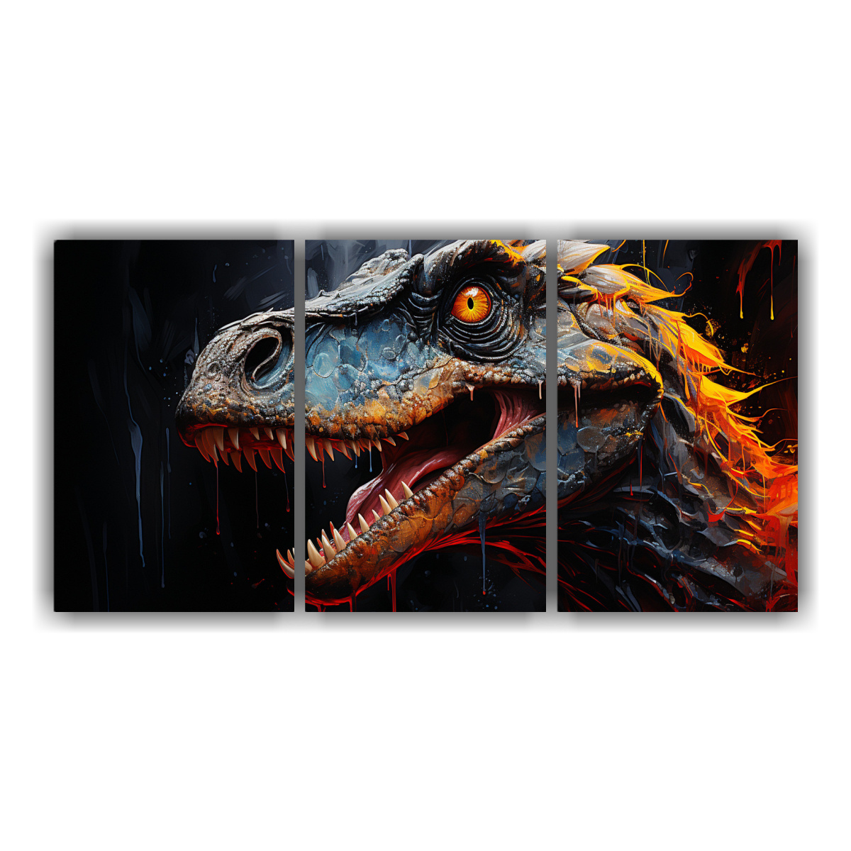 Pintura Original Estilo Estilo óleo Colorido De Velociraptor: 3 Lienzos Cálidos